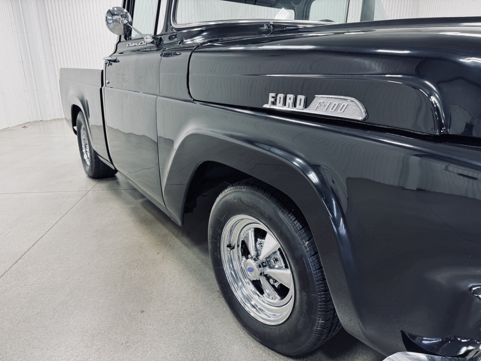 1957 Ford F100 short bed, big back window. PRIVATE SELL from private collection. This is a 58 F100 with a 57 front end. Brand new 302 motor with brand new Ford AOD auto transmission - 50 miles on the build. Every single thing is brand new on the drive train. Chrome alternator, aluminum radiator, electric fuel pump, electric fan, headers, brand new flow master 40 exhaust, Lokar shifter, brand new tilt column and wood trimmed steering wheel, full front power disc brake conversion, new shocks, power steering, new auto meter gauges, all brand new interior, new glass, all windows Chanels and door mechanisms are new, LED headlights and halos, new chrome all the way around, new king pins, new front end, professionally lowered with new springs, brand new Cragar wheels, brand new professional paint and body, new composite bed, new fuel cell located under the bed. This is a turn key, daily driver that will drive highway speeds. I have brand new window wings, new glass, etc. Can add vintage AC if desired. Can help with shipping. Located in Wichita, KS.