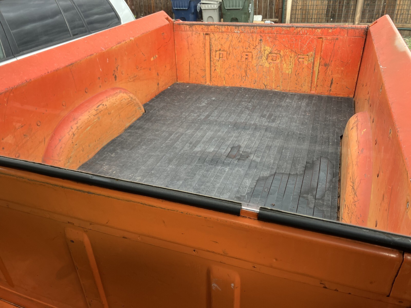 This truck started work at the Napa County Mosquito Abatement District in Napa, California. Since both the original truck and bed were originally orange, it is presumed that the bed was also from a working truck at the same facility.