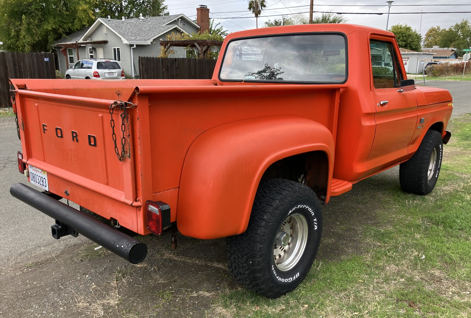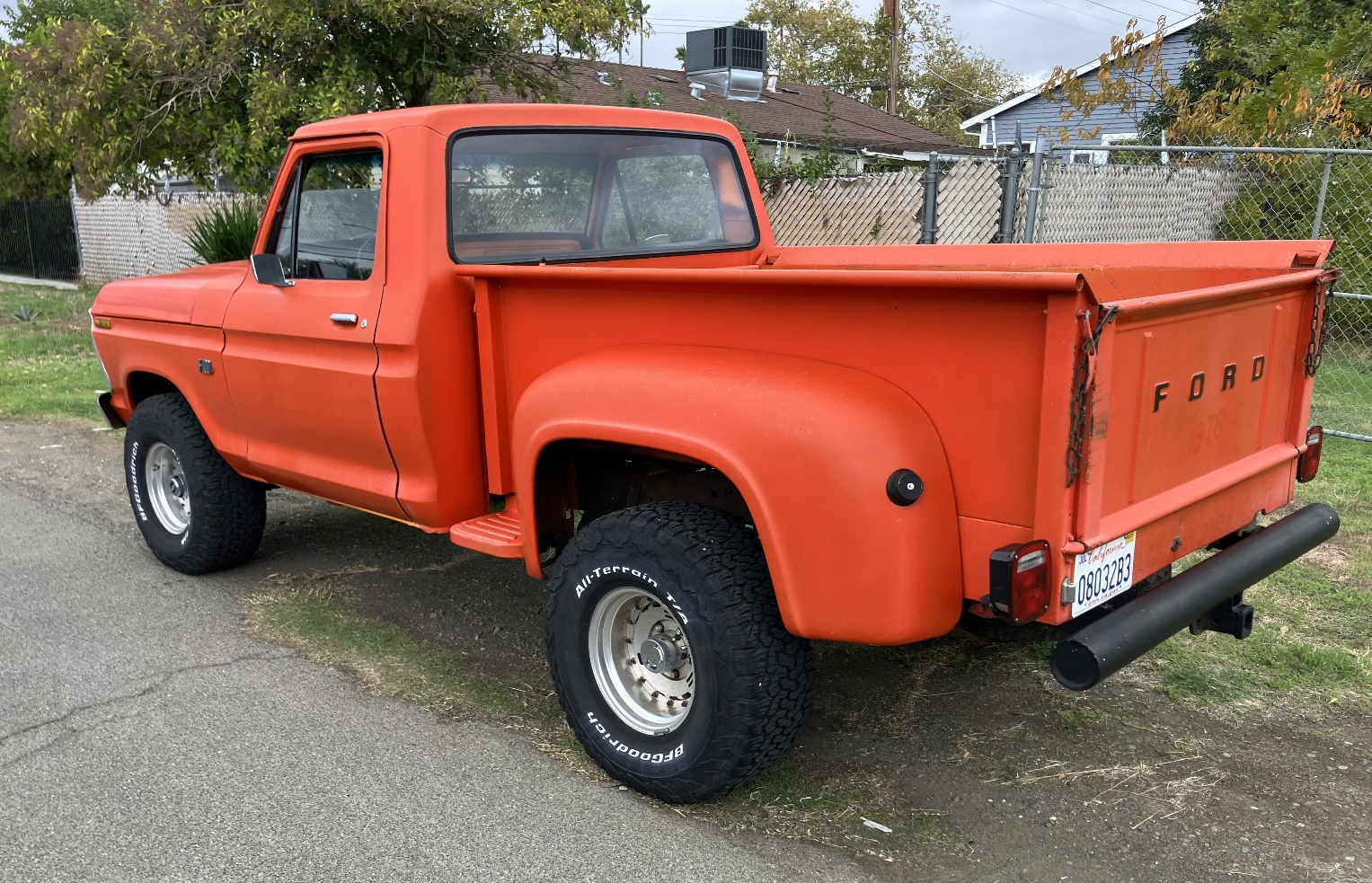 Its a 1976 Ford F-100 4x4 with a factory 360 V8 and believed-original 64,130 miles. It has a clean CA title and recently passed California smog (October 2025). It runs and is being freeway driven regularly.