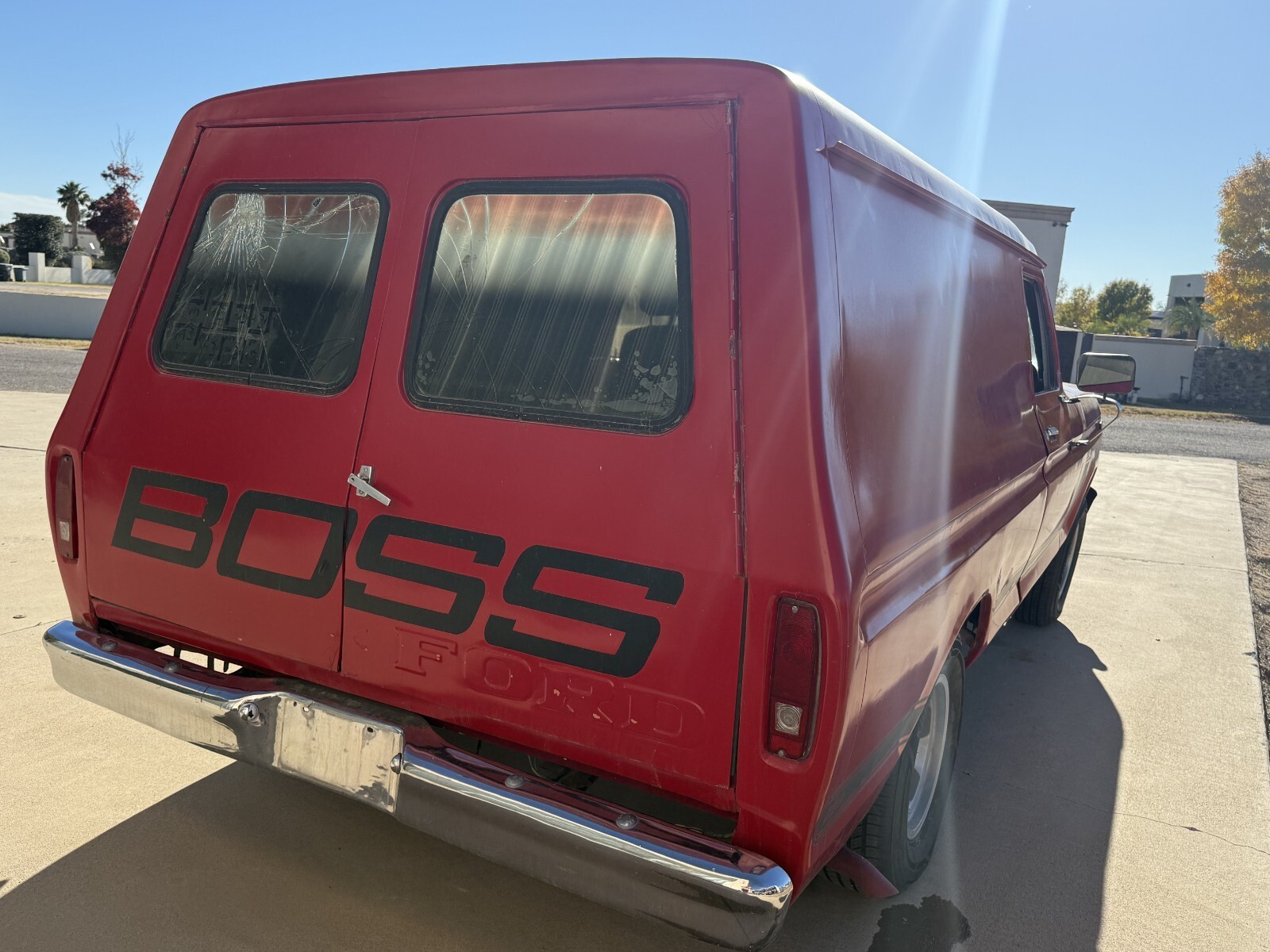 BUY IT NOW OR MAKE OFFER on this very rare Mexican made 1976 Ford B100 CarryAll Delivery it is short wheelbase 117 inches and total length bumper to bumper is 16 feet, powered by a mexico made 302v8 and 4 speed manual transmission, this is a project but does run and lot drive, it is an old cheap paint job on it now with bad bodywork. It does have a US title. Please look at all the pictures and ask all questions 915-479-3762 before buying or making offer you are welcome to come and inspect the truck or have it inspected before buying or making offer it is a project and sold as is where is. If you have less than 50 feedback or you are outside the US please contact me before buying or making offer. Buyer is to make a $500 none refundable deposit within 24 hours and the balance is due in full within 7 days of sale. Since this is a project I do not take secure purchase.