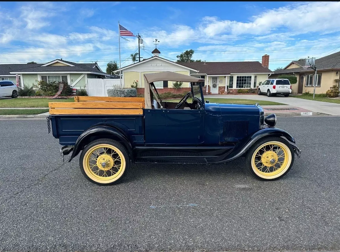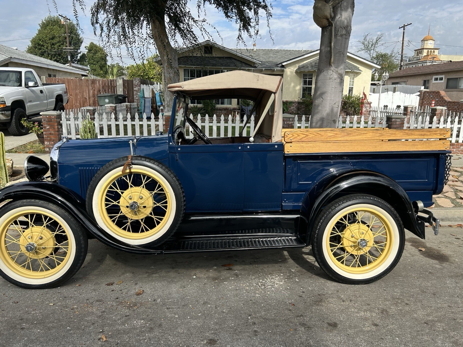 The 1929 Ford Model A is a classic convertible truck with a brown interior and blue exterior. It has your original 4-cylinder 3.3L and manual transmission This vintage vehicle has had only one previous owner and has a mileage of 123x With its original engine and clean title, this Ford Model A is a timeless piece of automotive history that is sure to appeal to collectors and enthusiasts alike.This model A starts runs and drives. I have owned it for the last 30+ years. Currently being maintained by my grandfather and his model a club and is located in Torrance California. You are more than welcomed to send anybody by to verify it, start it and drive it. This truck will also be listed locally so auction may end early.