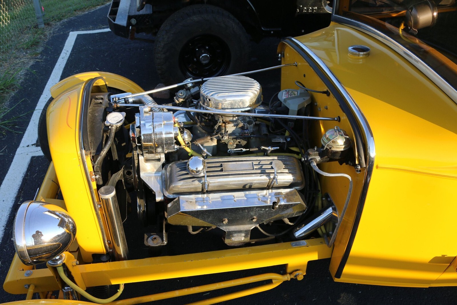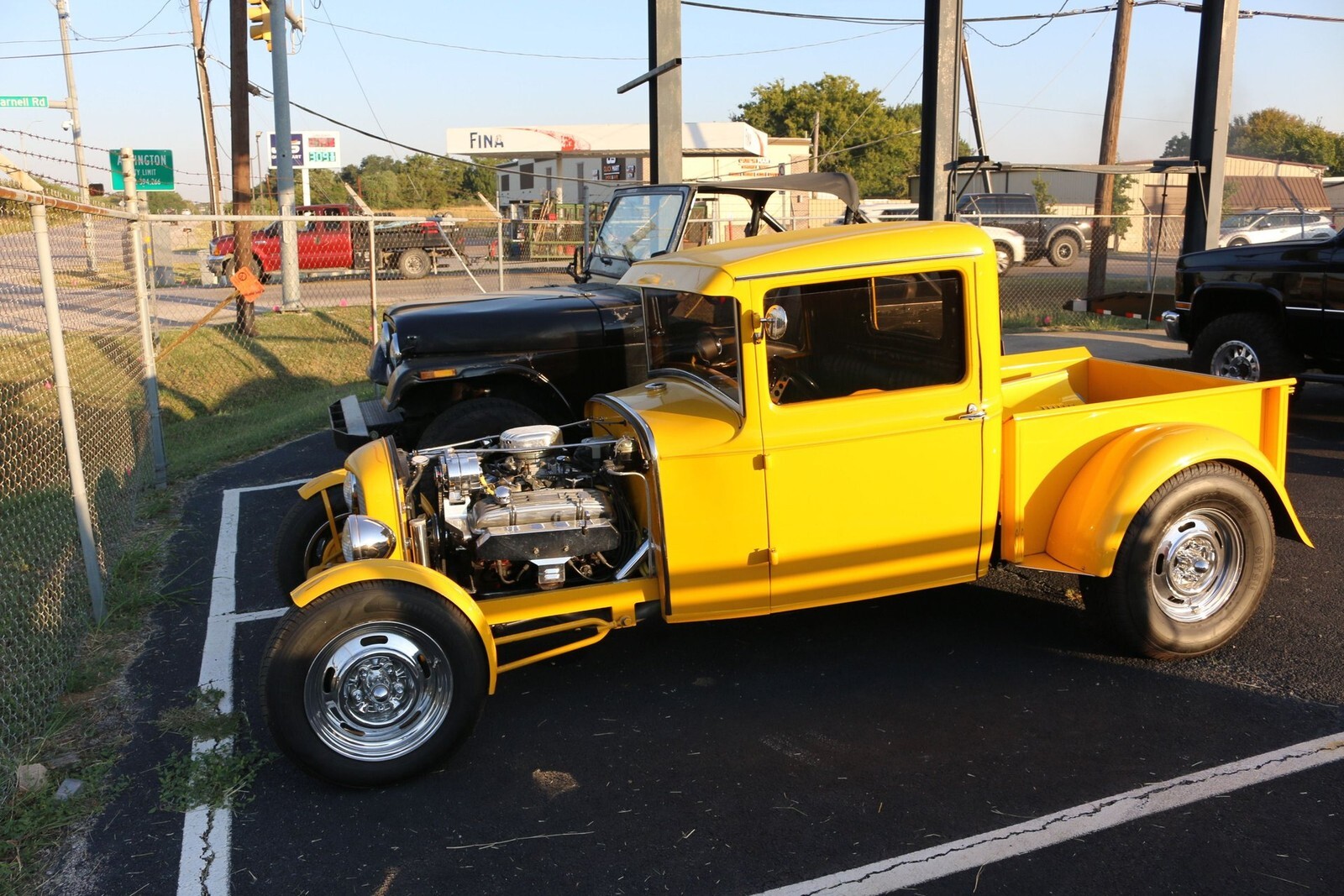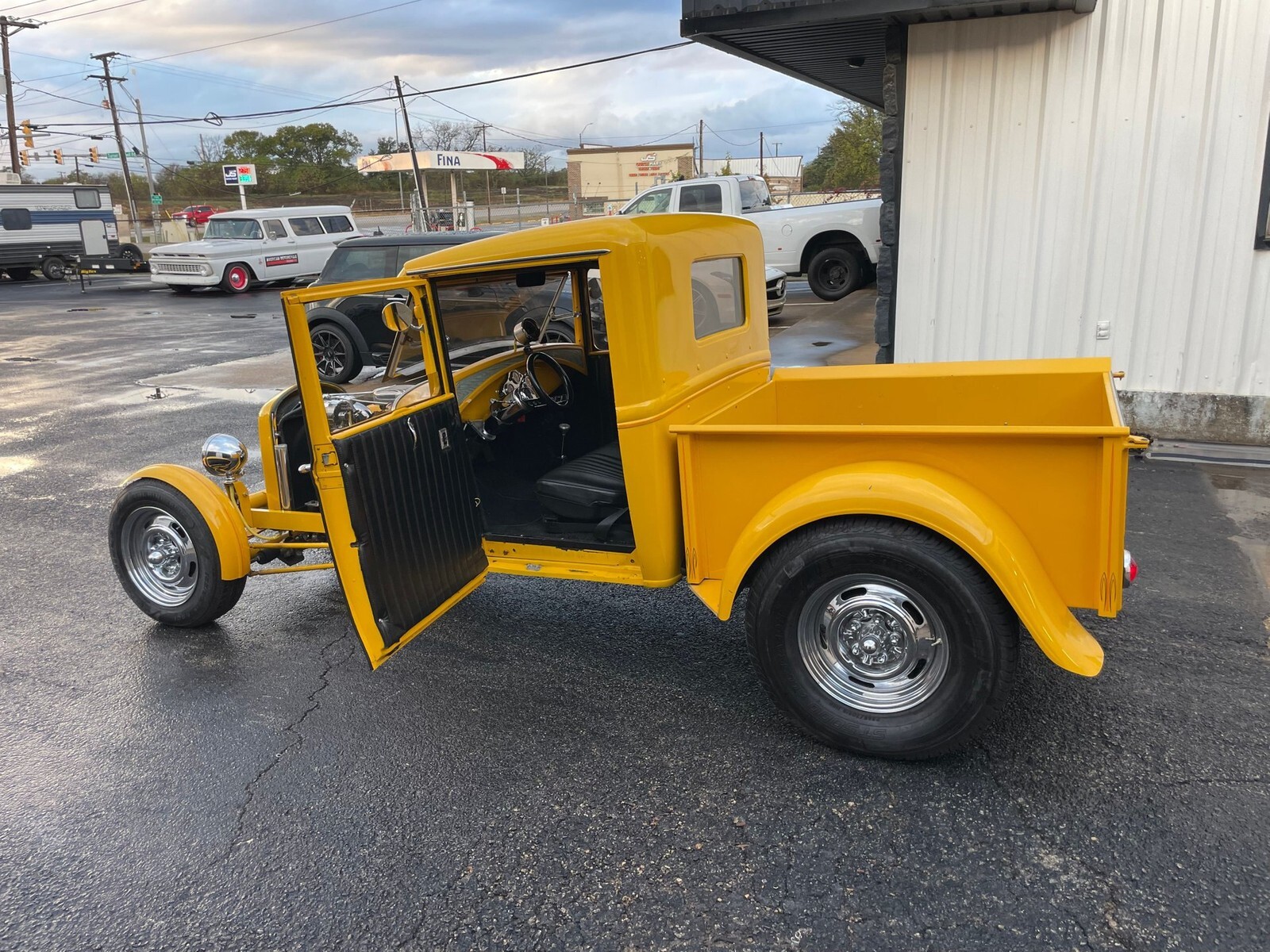 We have this Little Hot Rod. It is a 1930 Ford pick up truck street rod. It is powered by a Chevy small block, it has a 3 speed automatic transmission and what appears to be a Chevy 12 bolt rear end. It starts right up and runs well. The interior is a little cozy, but it is fun to drive. It has power windows and a tilt steering column.