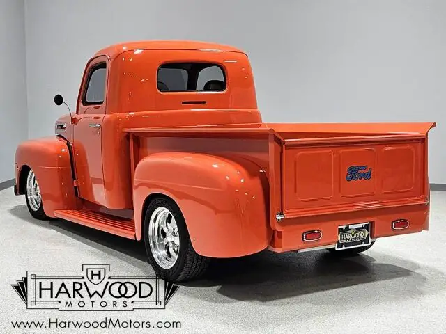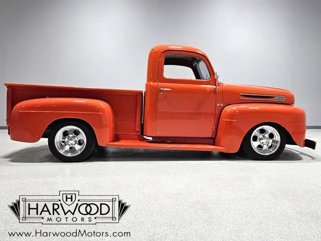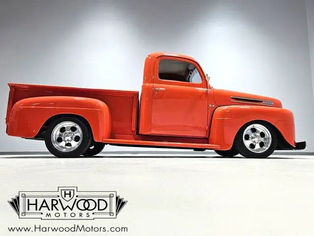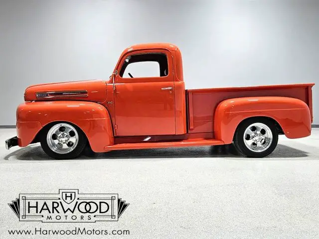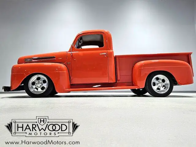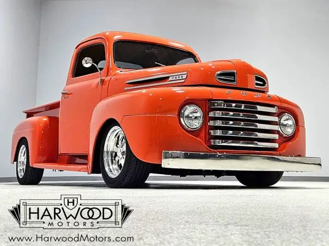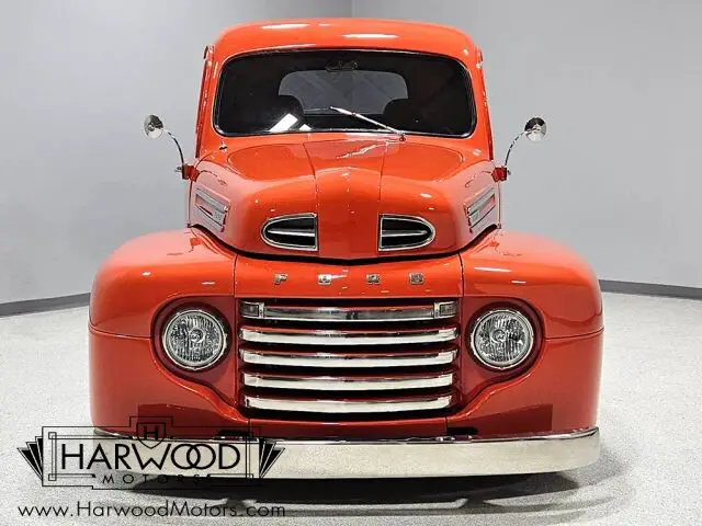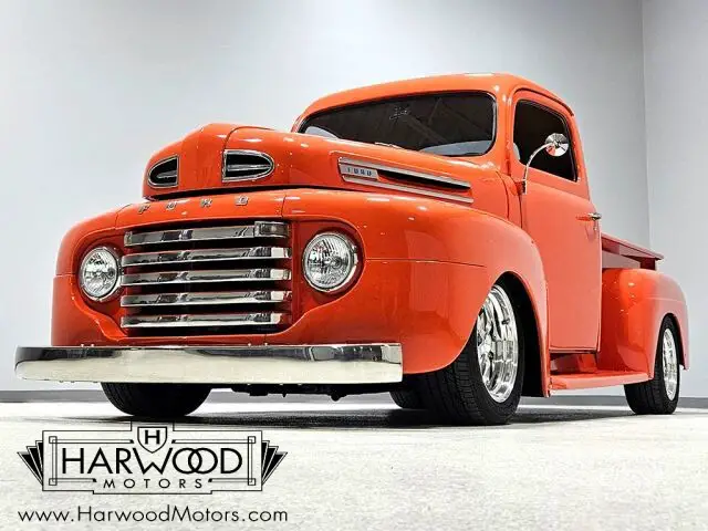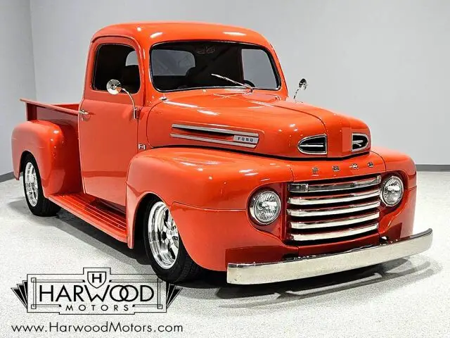 Neat little F-1 pickup that?s 100% Ford. Beautiful paint and bodywork, comfortable bucket seat interior. 302 cubic inch V8 with automatic. Power steering, 4-wheel disc brakes. A cool pickup that?s fully sorted and ready for the next run! For reasons we don?t quite understand, Ford pickups of this era seem to lag behind their Chevy counterparts in terms of value. That?s good news for you, however, because this slick 1949 Ford F-1 pickup offers a lot of truck for the money. Nicely finished in what Ford fans might call Competition Orange, a 2004 Mustang color, it?s definitely not subtle. But the build itself doesn?t go