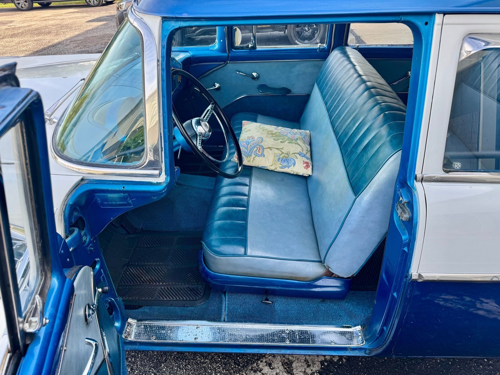 The interior is clean and upholstered in Bluevinyl upholsterythat really looks great! The dash and factory gauges are in good shape and giveyou a great view from behind the driver's seat.