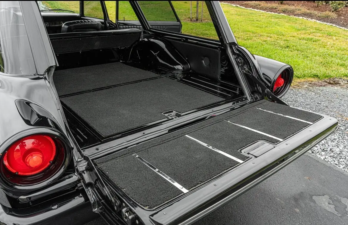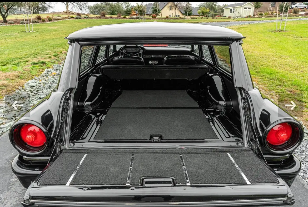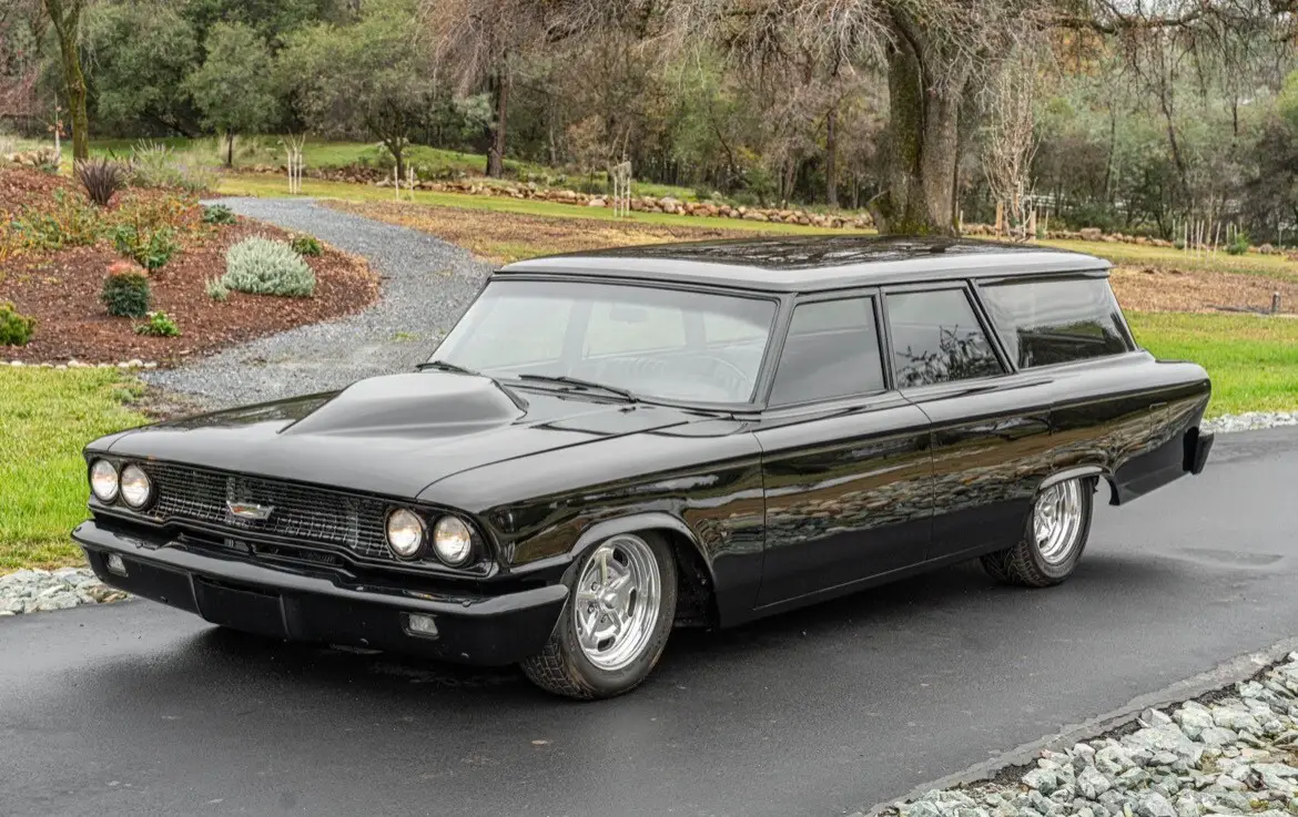 This stunning one-of-a-kind 1963 Ford Galaxie Country Sedan Wagon has beentastefully customized and features the following: Ford Performance 460CI V8 w 429 Cylinder Cobra Jet Heads Comp Cams, Roller Rockers, Holley 4-Barrel Carburetor, Milodon Gear Drive Electronic Ignition, Taylor Ignition Wires 3 Speed Automatic Transmission Narrowed Ford 9-inch Rear Axle Wilwood Disc Brakes - Front & Rear Lowered Performance Suspension Aluminum Radiator w Electric Fan Dual Exhaust System Fiberglass Vented Bubble Hood Shaved Door Handles w Electric Door Poppers Exterior Trim and Badging Deleted Blacked-Out – Grille, Fiberglass Bumpers, Window Trim American Racing “Salt Flat Special” 16” Wheels Quad Headlamps & Clear Turn Signals Custom Installed Trailer Hitch Receiver Custom Black Interior w Bucket Seats, Center Console w VDO Gauges Blaupunkt AM/FM/CD Stereo System Custom Cobra Floor Mats and One-Piece HeadlinerRear Air Suspension