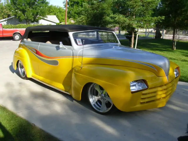 1948 Ford Sedan that has beencustomizedall the way through. Doorhandles and door windows have been molded off. The top was cut off and a soft top installed. This car has a 350/350 and runs like a champ! Car is clean, clean. clean.Low to the ground and a eye catcher, this is one pretty car. Any questions please call or text. 559-917-6336