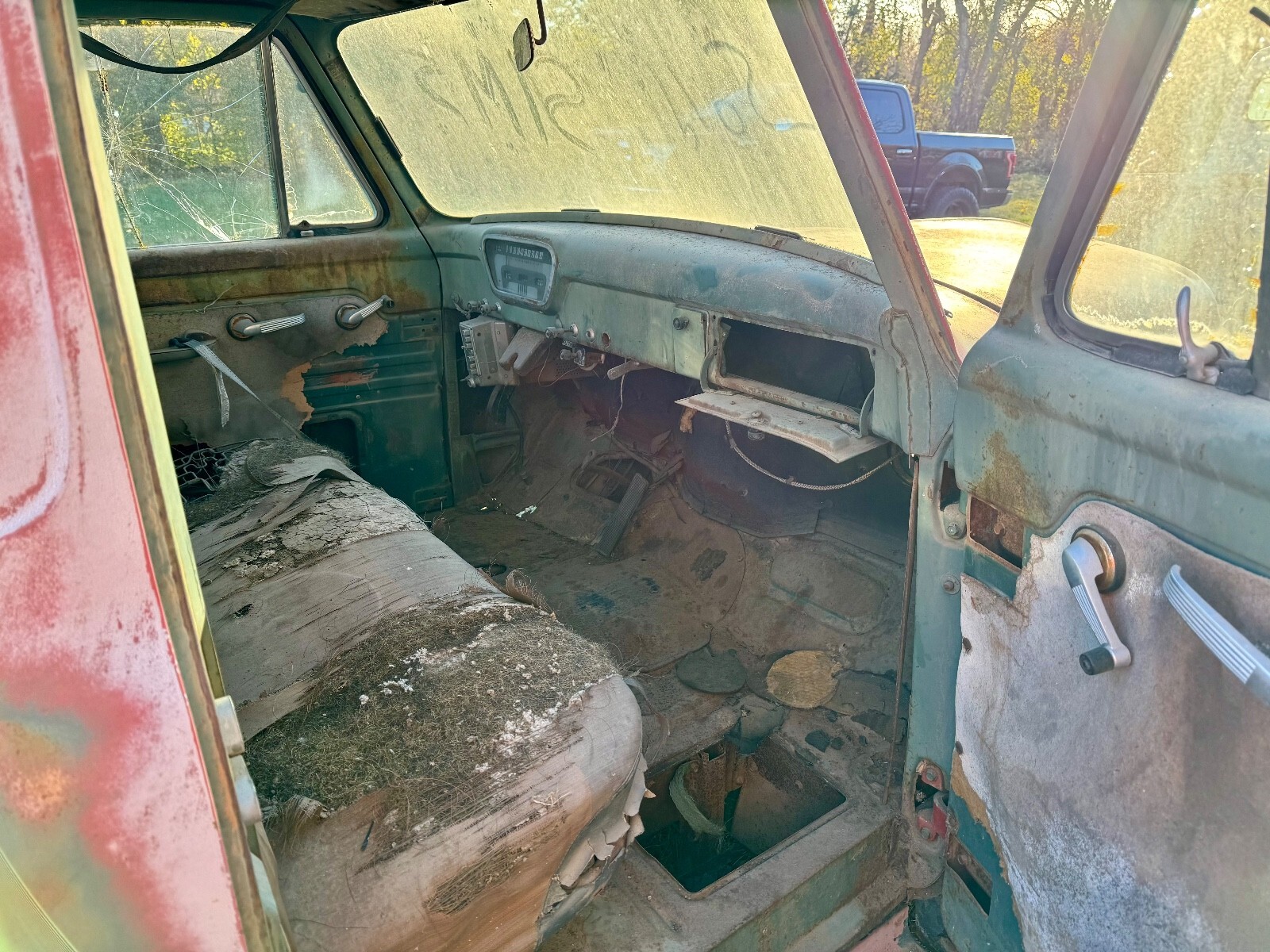 1953 Ford F-100 Deluxe Project Truck. This is a solid project and a great foundation for a build or restoration. Originally dark green, the truck is a roller with no drivetrain, but it rolls easily and moves without issue. There is currently no steering column hooked up, but a column is in the cab and will go with the truck. The rear glass is not installed and will also go with the truck. The cab is in good shape overall with no rust holes along the drip rails, though there is some rust in the floorboards and corners as expected. On the way back from the DMV, the driver's door blew open and is now slightly bent along with the cowel, and does not close all the way. Happy to provide photos if requested. Is an easy fix, just inconvenient. Clean Nebraska title in my name. If you’re looking for a classic F-100 to turn into something special, this is a great truck to start with.