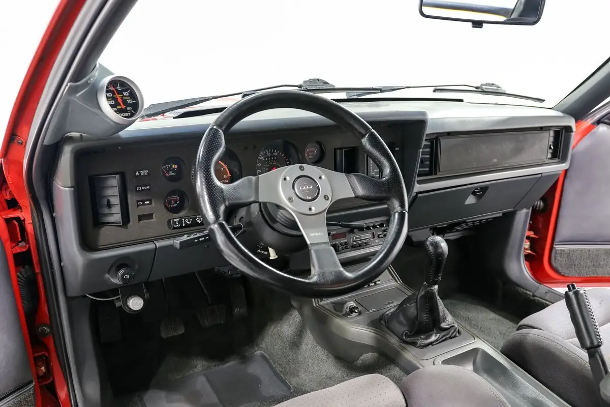 Finished in a vibrant red exterior with a sleek gray interior, this Mustang SVO exudes a sense of sportiness and sophistication. The bucket seats wrapped in cloth offer comfort and support, while the factory SVO wheels and hood give it an unmistakable presence on the road. It's a design that stands the test of time, blending retro charm with modern flair.