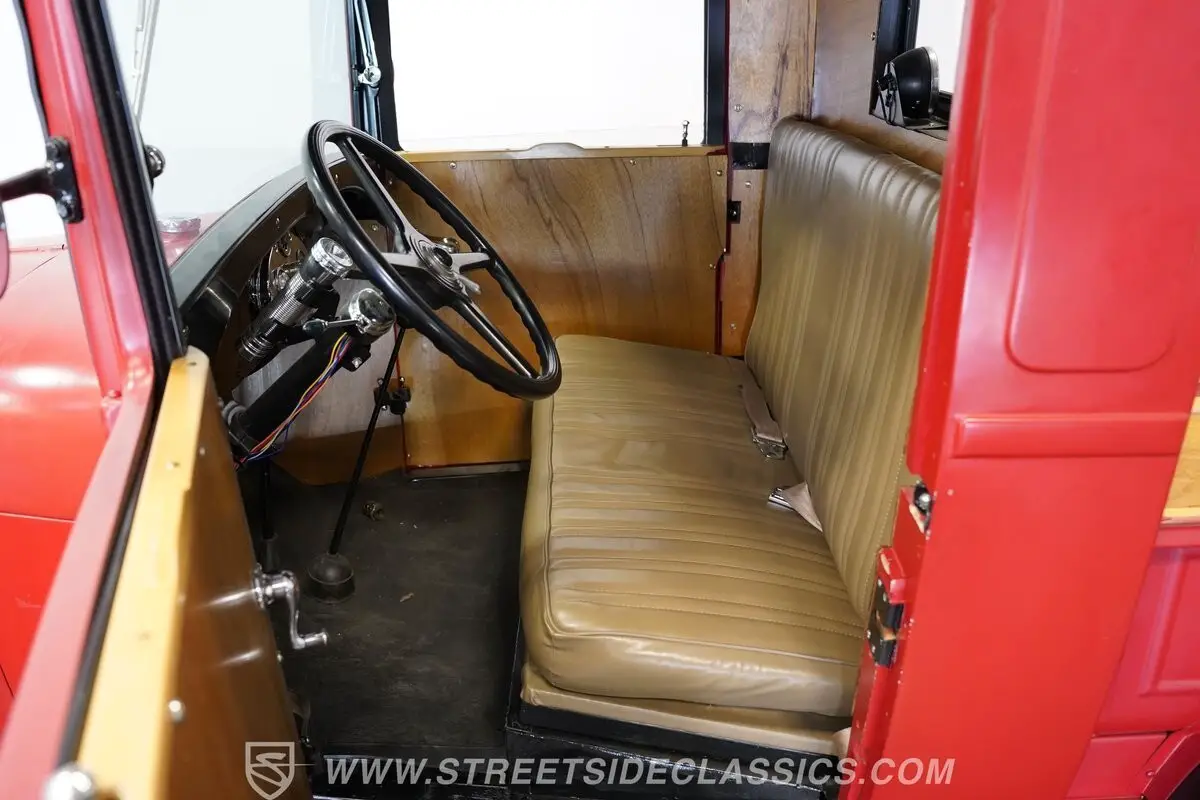 This interesting interior has wooden door panels, a wooden headliner, and the same finish behind the bench seats-a pretty cool look. The vinyl bench seats are in good condition, as is the rubber floor, which makes for an easy clean. A steering wheel correct to the year of the Model A is in good shape, and the dashboard is in good shape as well. The tiny gauge cluster in the middle of the dash is period-correct, and everything else, as you would expect, is as plain as can be.