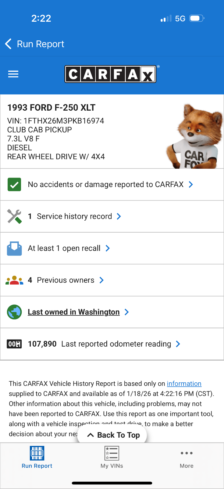2ND OWNER BOUGHT IT IN 2001 AND OWNED IT IN WA