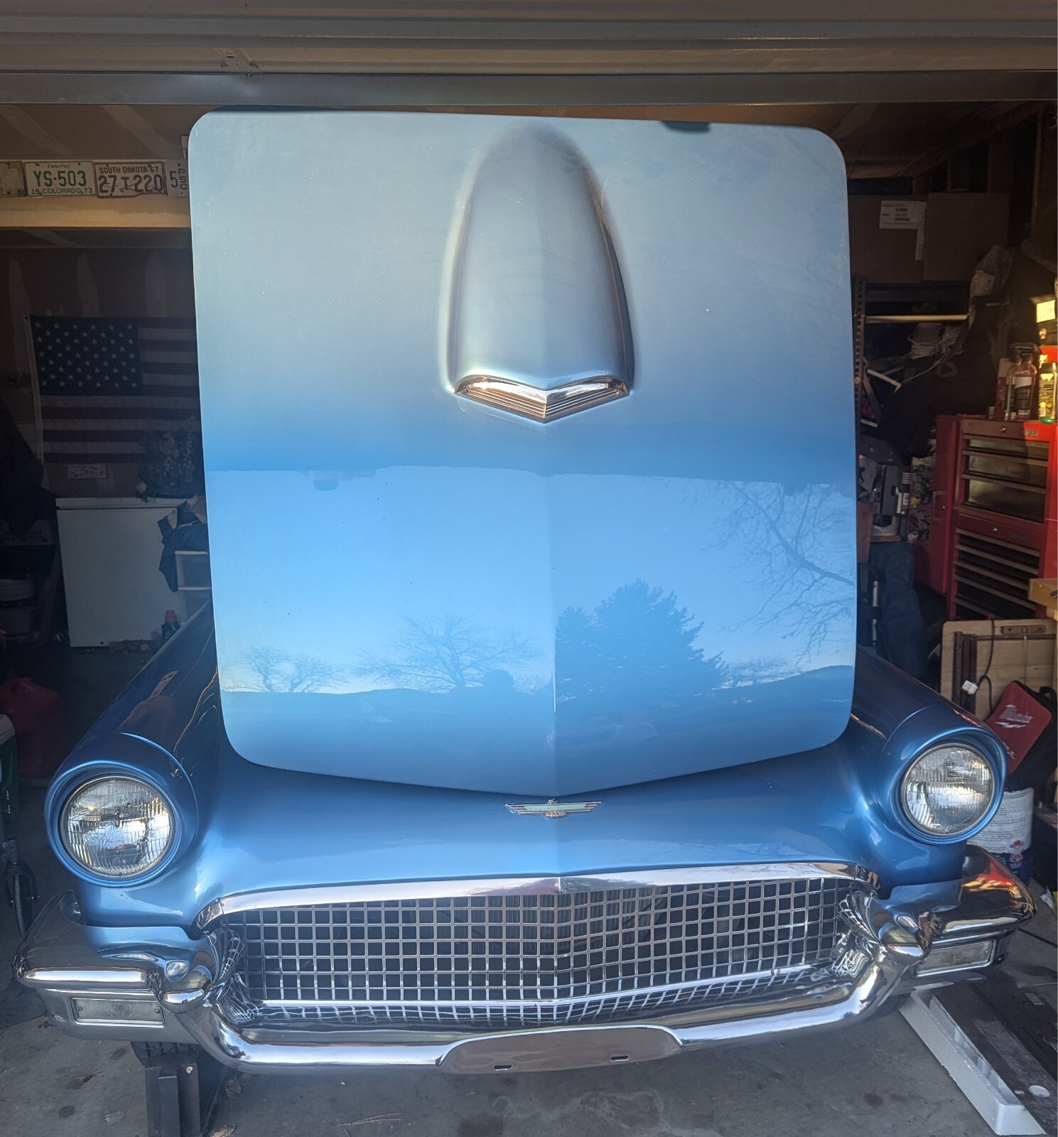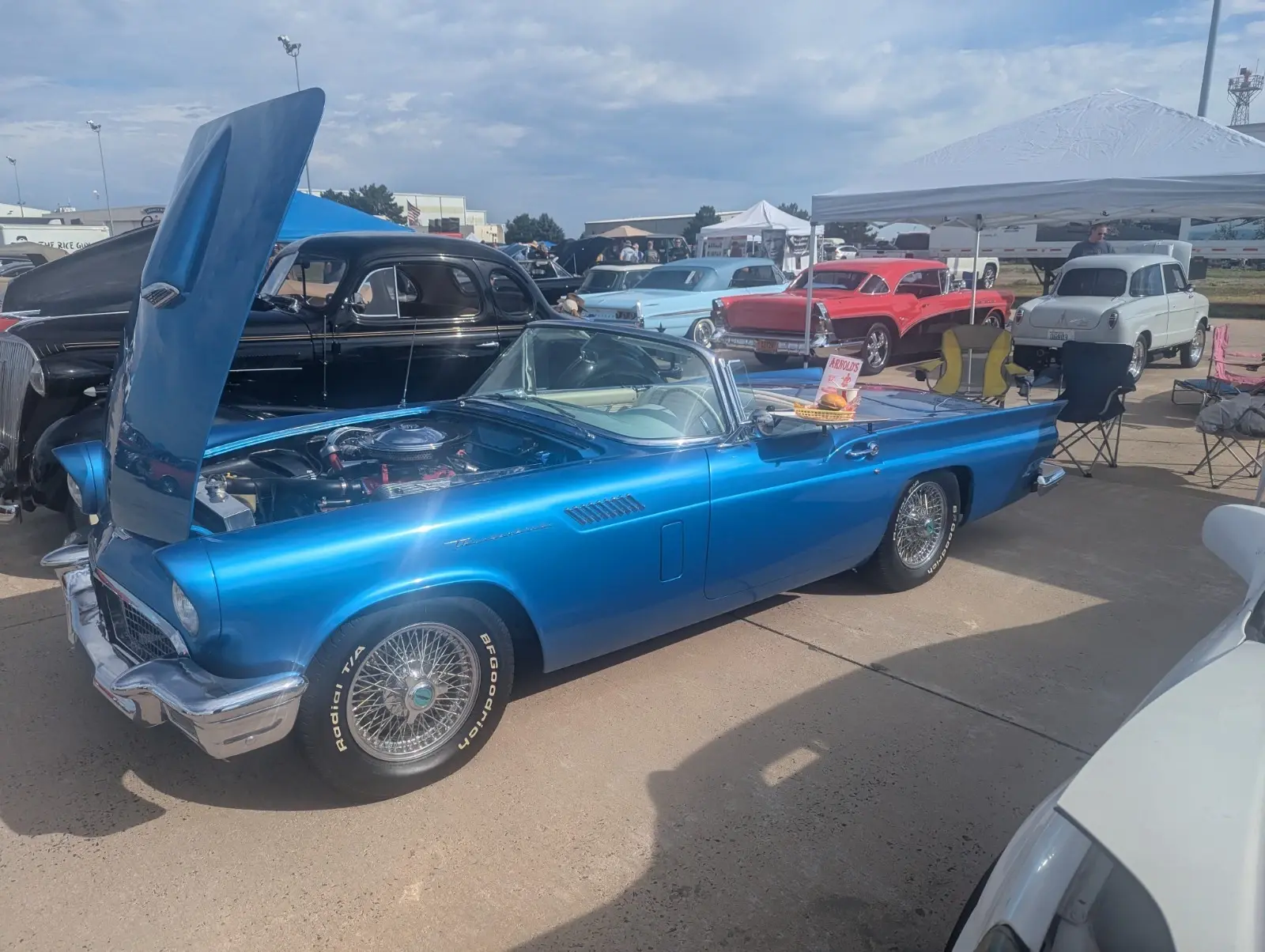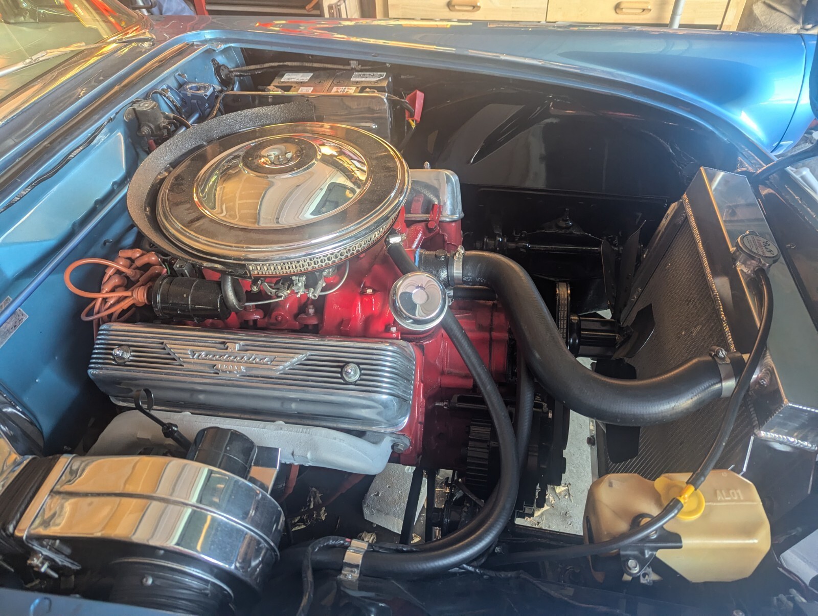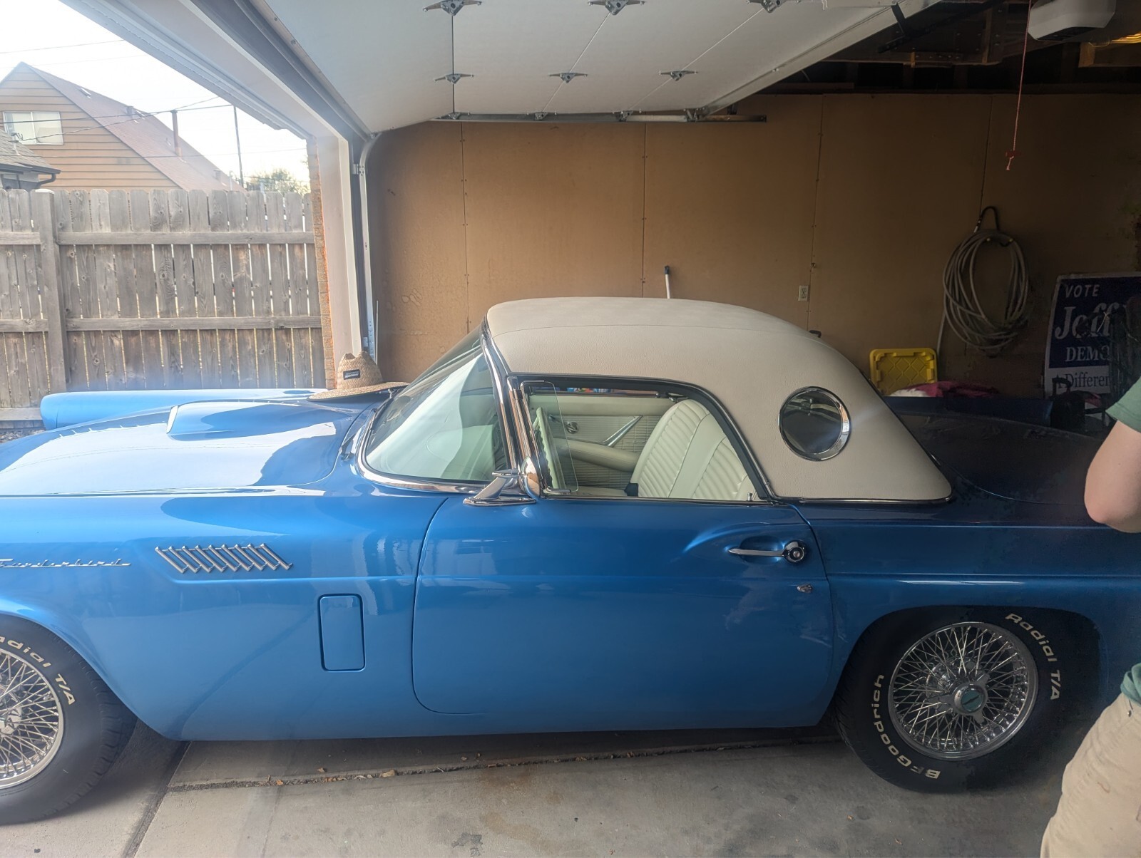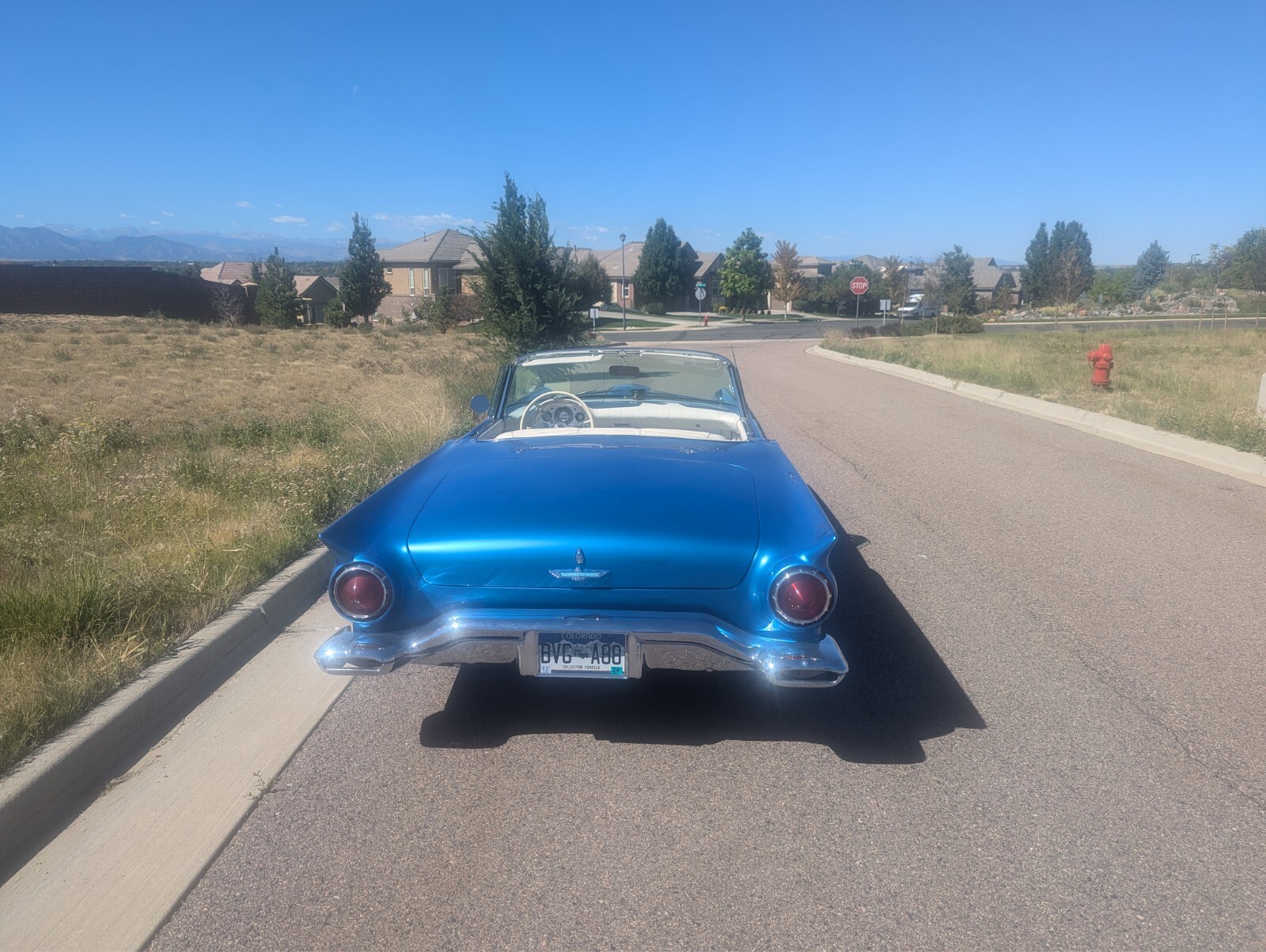 The 1957 Ford Thunderbird is a classic convertible with a white interior and blue exterior. It has 2 seats, 8 cylinders, manual transmission. Thunderbird, known for its sleek design and iconic style. With its clean vehicle title and timeless appeal, this classic car is sure to be a standout choice for any collector or enthusiast. I replaced the fuel tank, radiator and water pump from Casco Thunderbird Specialist with a higher output to deal with the well known overheating problems. Comes with hard and soft top. It does have a few chips in the paint.