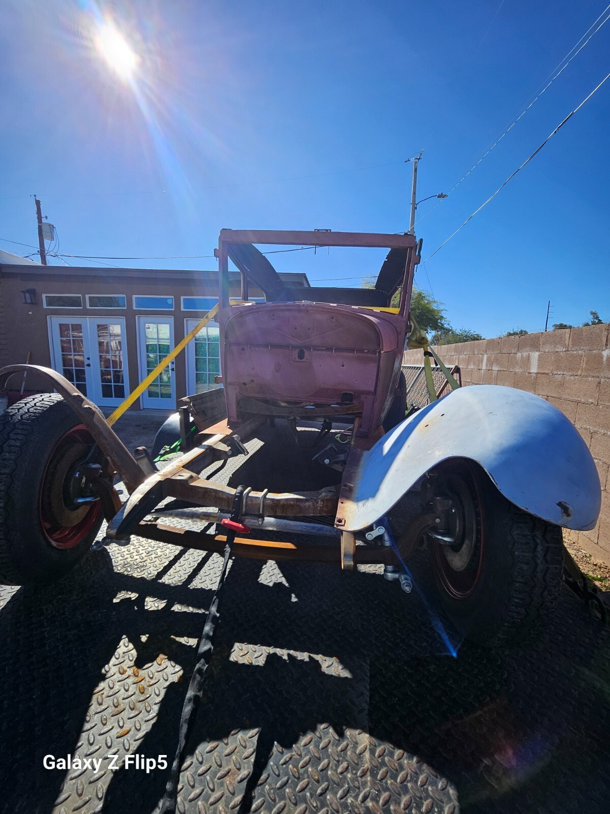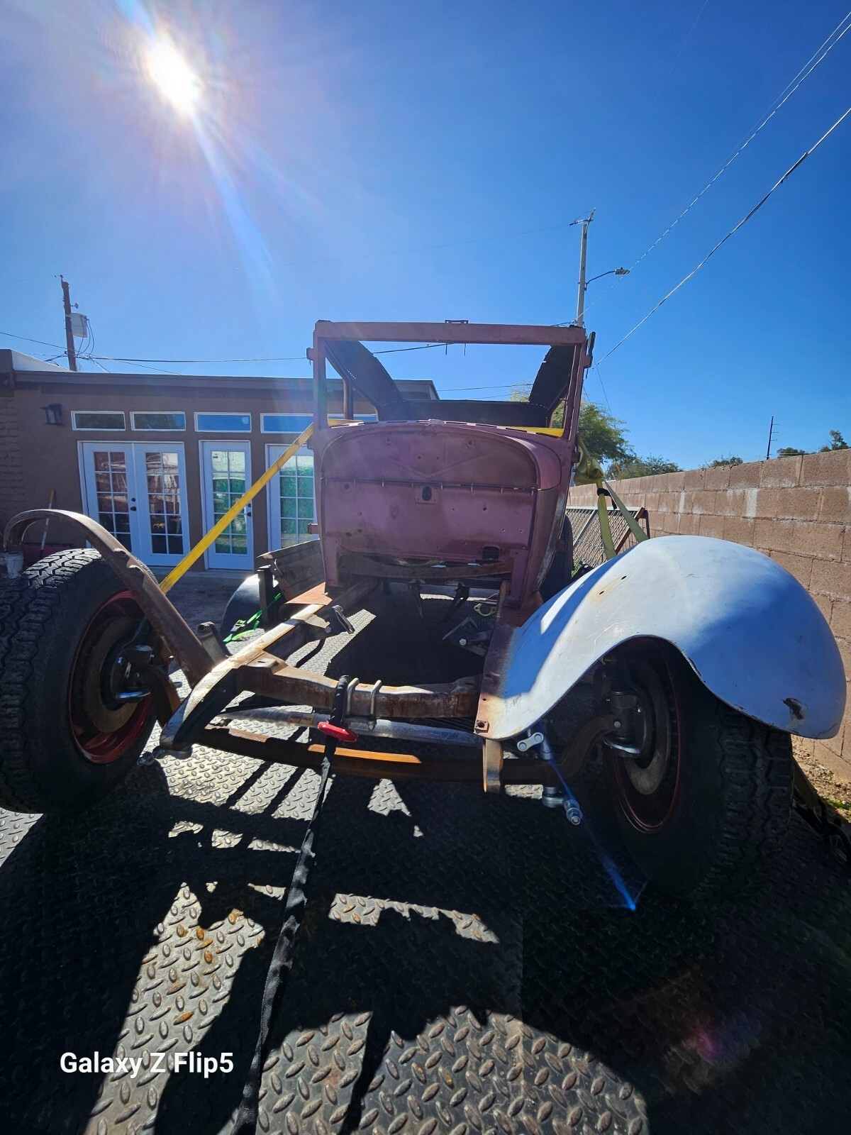 1929 model A ford sitting on a Speedway Raceway frame speedway raceway front end with disc brakes 9-inch ford posi rear end 302 Ford mustang V8 C4 transmission with a Hurst shifter. New Aluminum gas tank and front seats out of 2005 GMC terrain. car is solid needs floors have hood front fenders and rear fenders new rims and tires.
