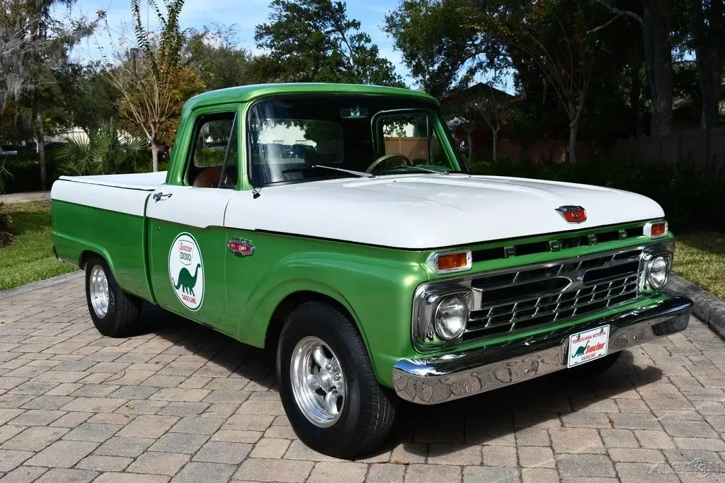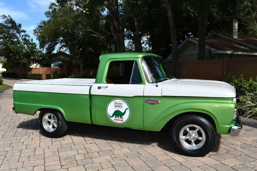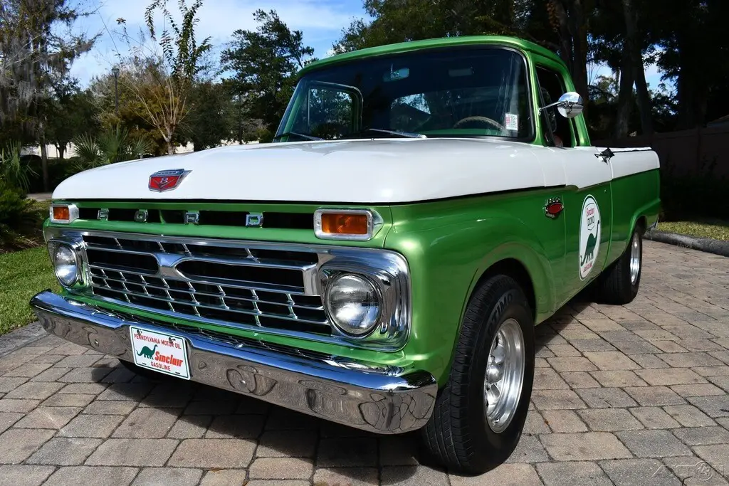 Remarkable Fully Restored 1965 Ford F- 100 Pickup Short Box 350ci V-8 Engine Rebuilt TH350 Automatic Transmission Decorated as a Sinclair Service Truck Ostrich Upholstery Edelbrock Carburetor HEI Ignition System Power Steering Power Front Disc Brakes