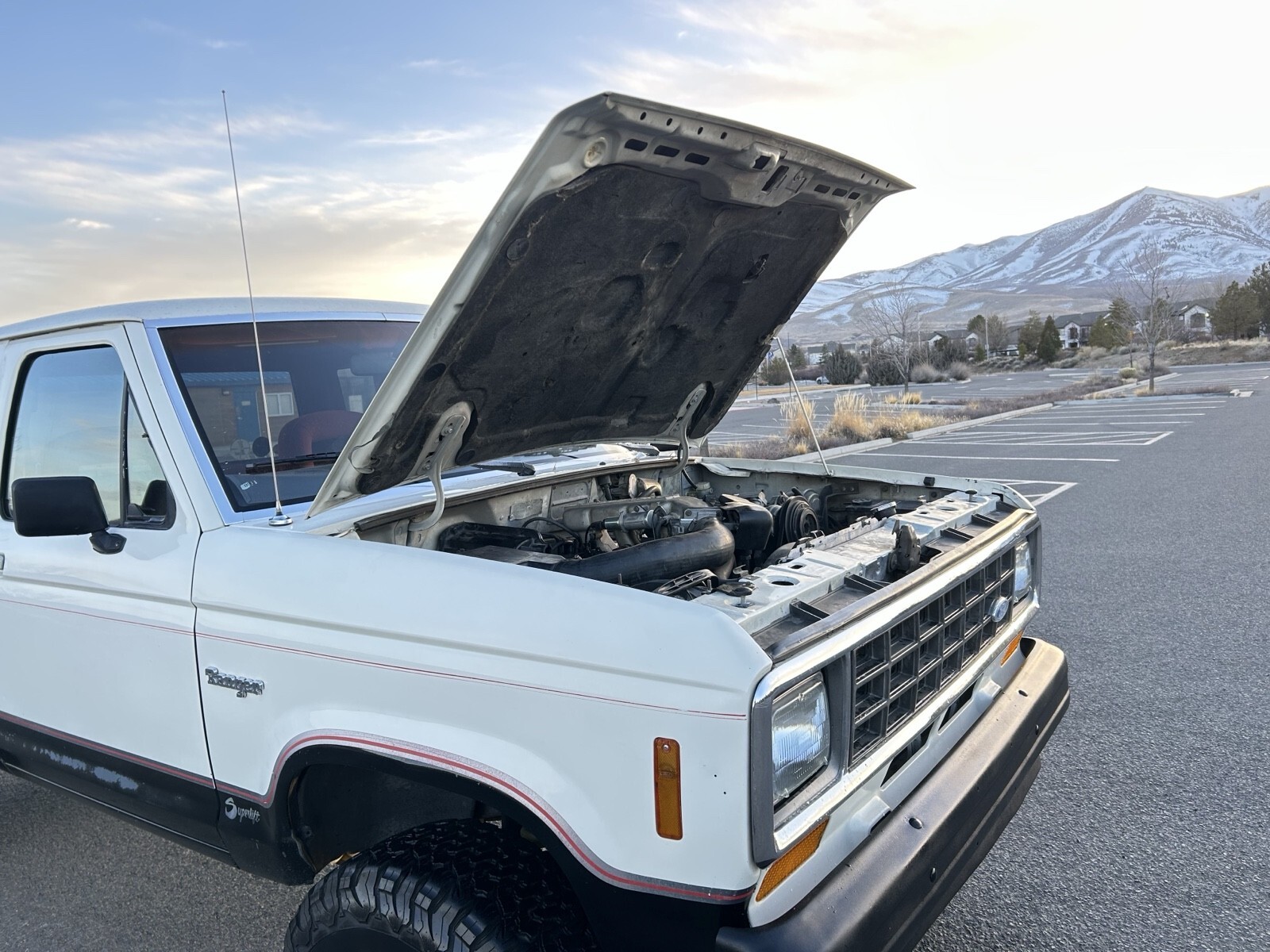 The 1986 Ford Ranger is a clean white vehicle with only 98,000 miles on the odometer. It has been in the ownership of the current owner for one year and is in great running condition. This original Ford Ranger is not regularly driven, making it a reliable and low-mileage option for those looking for a classic pickup truck with a solid history.