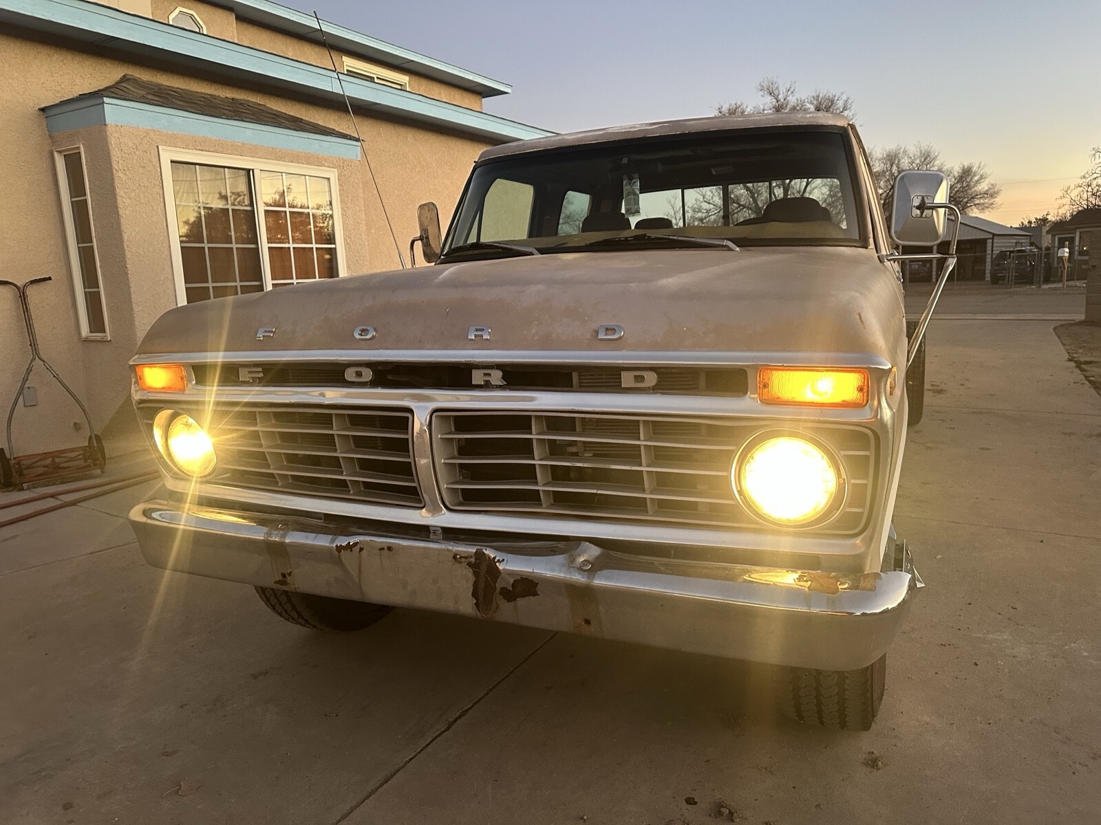 The 1974 Ford F350 is a vintage pickup truck that has been modified by the current owner to enhance its interior, and drivetrain. With a clean cool and retro tan/gold color and a low mileage of 131,460, this vehicle is in great running condition and is not driven on a regular basis. Perfect for collectors or individuals looking for a unique and updated version of a classic Ford model. Perfect if your wanting a complete custom 1 of 1 build this package is it!