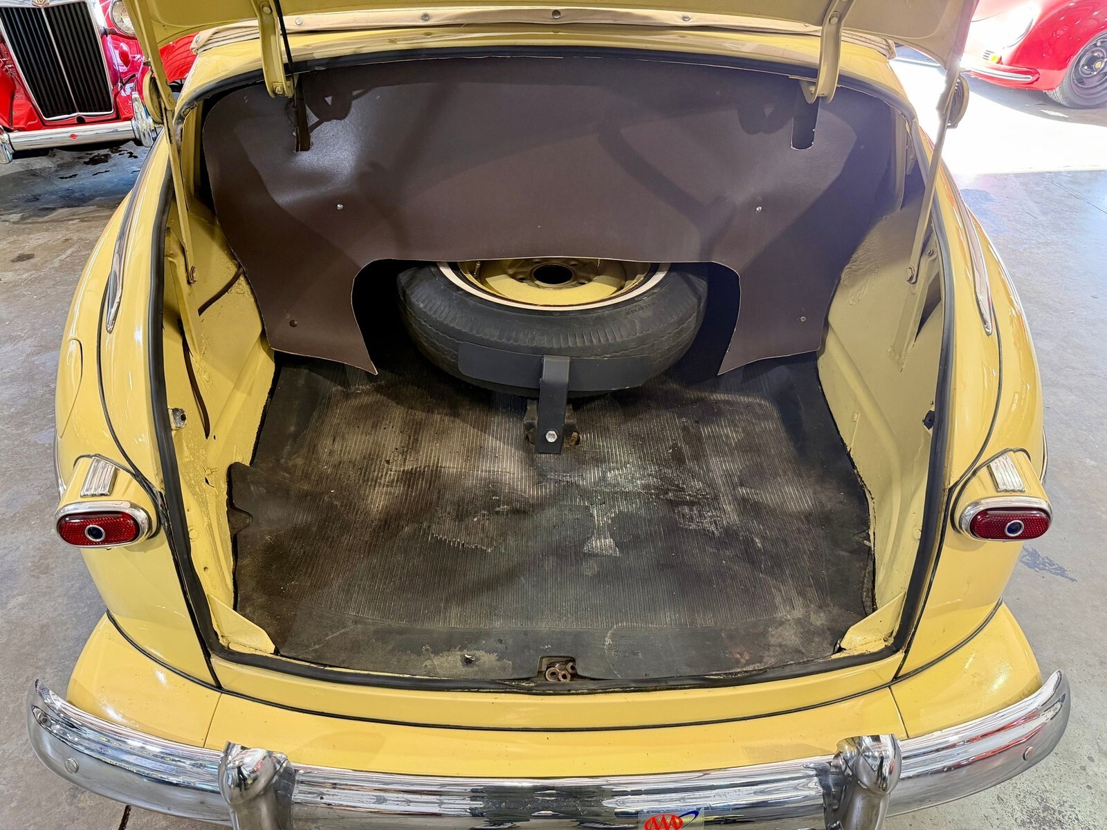 The interior shows well and is finished in brown leather. The highly original art-deco style wood grain dash and instrument panel are in great shape and are beautiful now as they were in 1948.