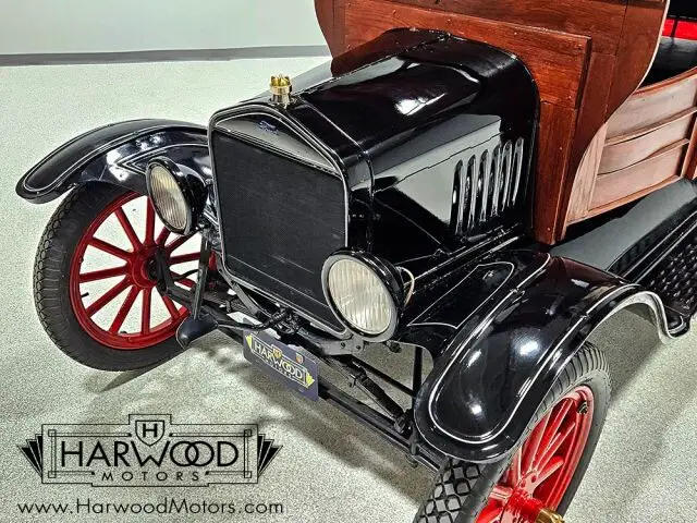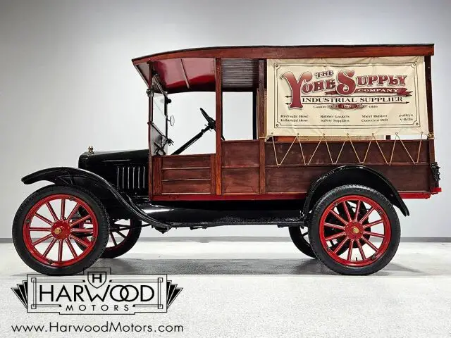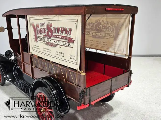 This handsome 1923 Ford Model T depot hack was restored for promotional use by the company shown on the side panels (which are removable). It was a frequent attendee in local parades and shows, and generally was used like all collector vehicles?sparingly and with care. That company was recently sold to a larger company and they no longer have need for the handsome pickup, so here it is today. The restoration was finished probably in the early 2000s, but it was rather well done. The familiar Model T sheetmetal pieces are in great condition with traditional black paint, while the depot hack bodywork is wood. Contrary to popular belief, vehicles like this do not carry factory bodywork, as all depot hack bodies were aftermarket, so there?s always a little variation. We do not know the maker of this particular body, but it remains in excellent shape with a dark finish, no rot, and correct proportions. The vinyl top covering (called leatherette in period literature) is unmarked, and as we mentioned, those vinyl side panels are easily removed so you can provide your own advertising. Some jaunty white pinstripes add a little contrast, and it?s nicely accessorized with step plates, twin side mirrors for safety, and a single side-mounted spare tire.