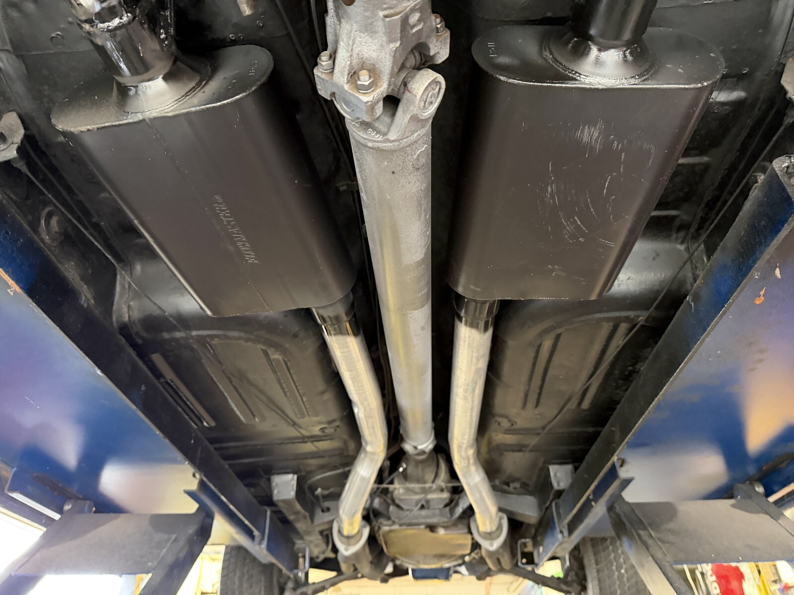 FULL DUAL EXHAUST ALL WAY OUT BACK THRU GT VALANCE WITH CORRECT QUAD TIPS …SOUNDS AWESOME
