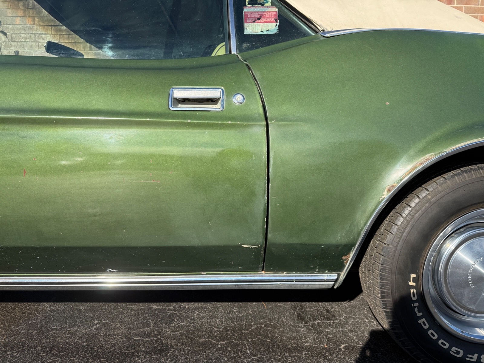 Original Avocado InteriorBoth Front Seats Have RipsCarpet Is Older - But Not TatteredDriver Door Panel Is RippedPassenger Door Panel Is Excellent & Can Be Re-UsedBack Seat Has No Rips Or TearsDash Pad Is Good Original Shape W/ Minor Cracking