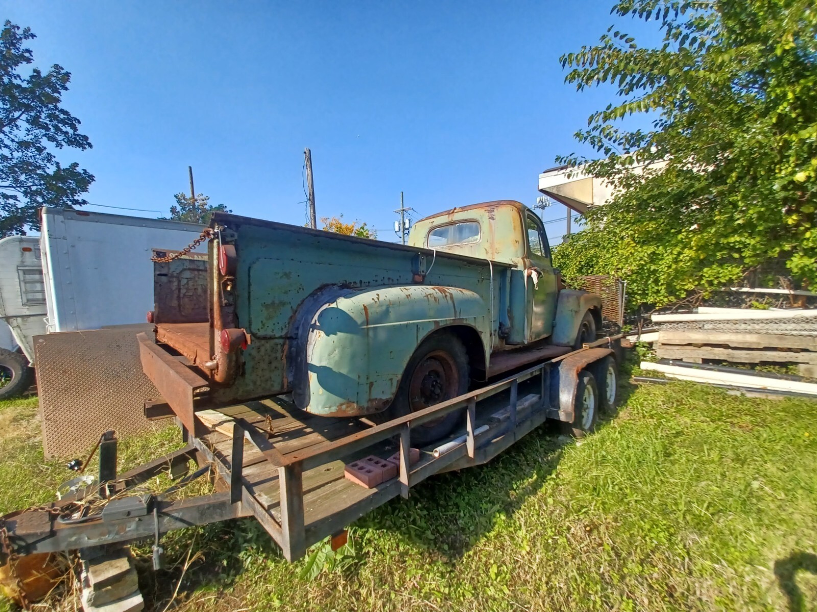 Solid truck with extras trailer included1948 F3 Barn Find all original flat head V8 that turns over original transmission extra fenders comes with trailer that has good tires and all lights work door handles and locks replaced seat was redone and all glass is there solid frame needs floor original patina