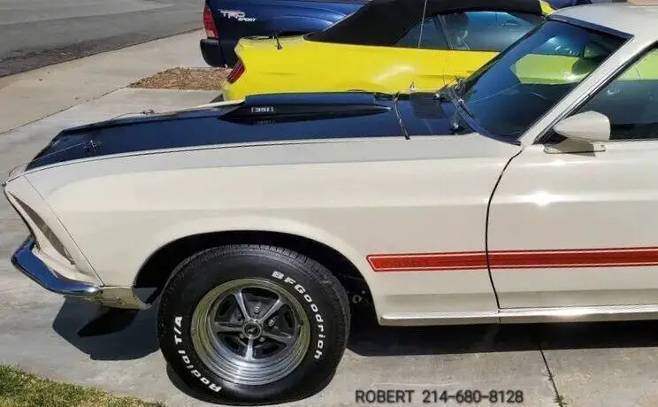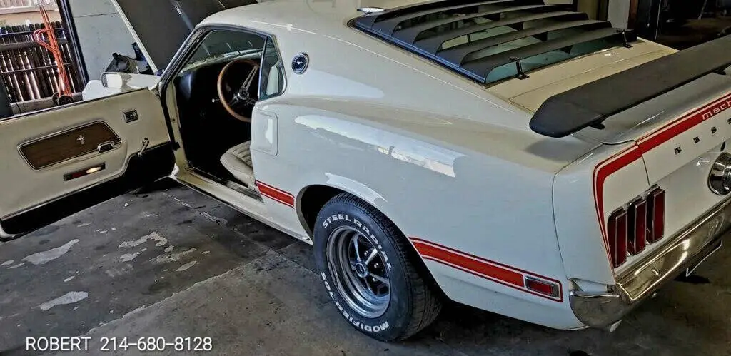 WHITE LIGHTNING - 1969 Mustang Mach 1 premium fastback M-code with original 351ci Windsor engine and 3 speed manual transmission. - All original car except the paint has been redone in Ford Wimbledon white with classic 69 Mach 1 red stripes & black accents. - White on white inside & out as you can see with the original white interior. Only 16 of these cars came with the white Mach 1 bucket seats and this is one of them. - There's some side headliner seam stitching that needs attention as seen in the pics. Other than that the car is in fine shape cosmetically and mechanically all the way around. - Edelbrock 4 barrel carburetor added during 2012 rebuild. - Aluminum radiator. - Original rear end and suspension. - Front & rear spoiler. - Rear window louvers. - Power steering. - Power front disc brakes rear drum.. - Magnum 500 wheels with good BF-Goodrich tires. - Only two owners have meticulously maintained this classic muscle beauty over the years and now it's time for the 3rd owner to take the keys and carry on. This is a great price for a dream car that's about to become a reality for you. Don't miss this chance. - CALL OR TEXT ROBERT ANYTIME 214-680-8128 MrOldCar.com - We offer help with services such as financing, global shipping and encourage professional independent vehicle inspections. All deposits are non-refundable to hold a vehicle for any amount of time.