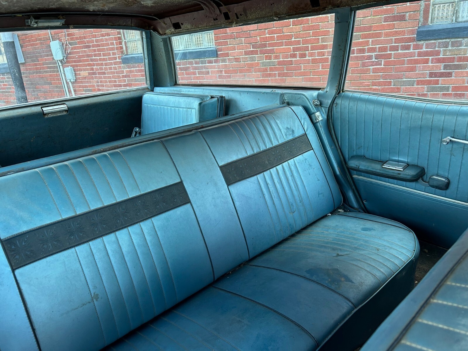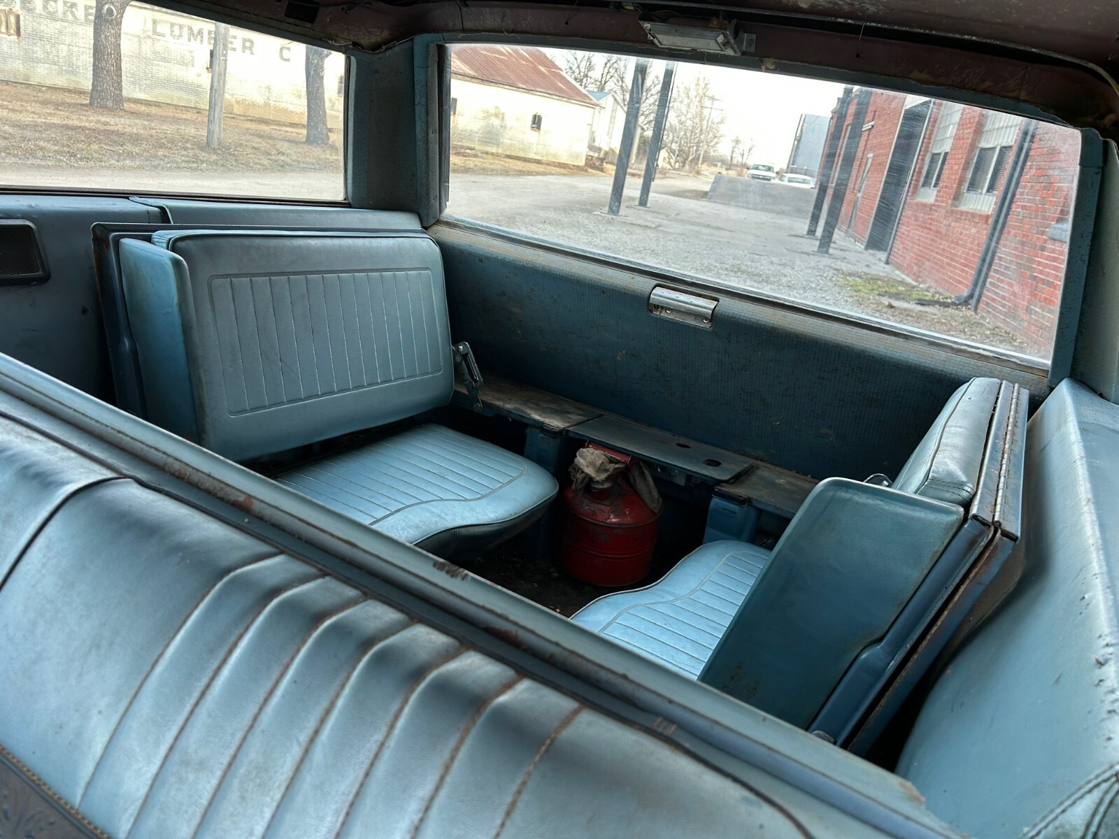 INTERIOR A BIT ROUGH, NEEDS HEADLINE, WINDSHIELD IS CRACKED, I DID NOT TRY TO OPEN REAR GATE. (NO KEYS) DIDNT WANT TO MESS ANYTHING UP AS ITS IN GREAT SHAPE BUT FOR A 60 YEAR OLD CAR SHE IS NOT BAD!