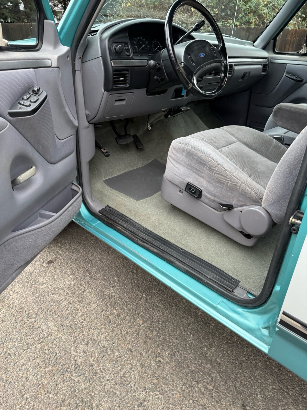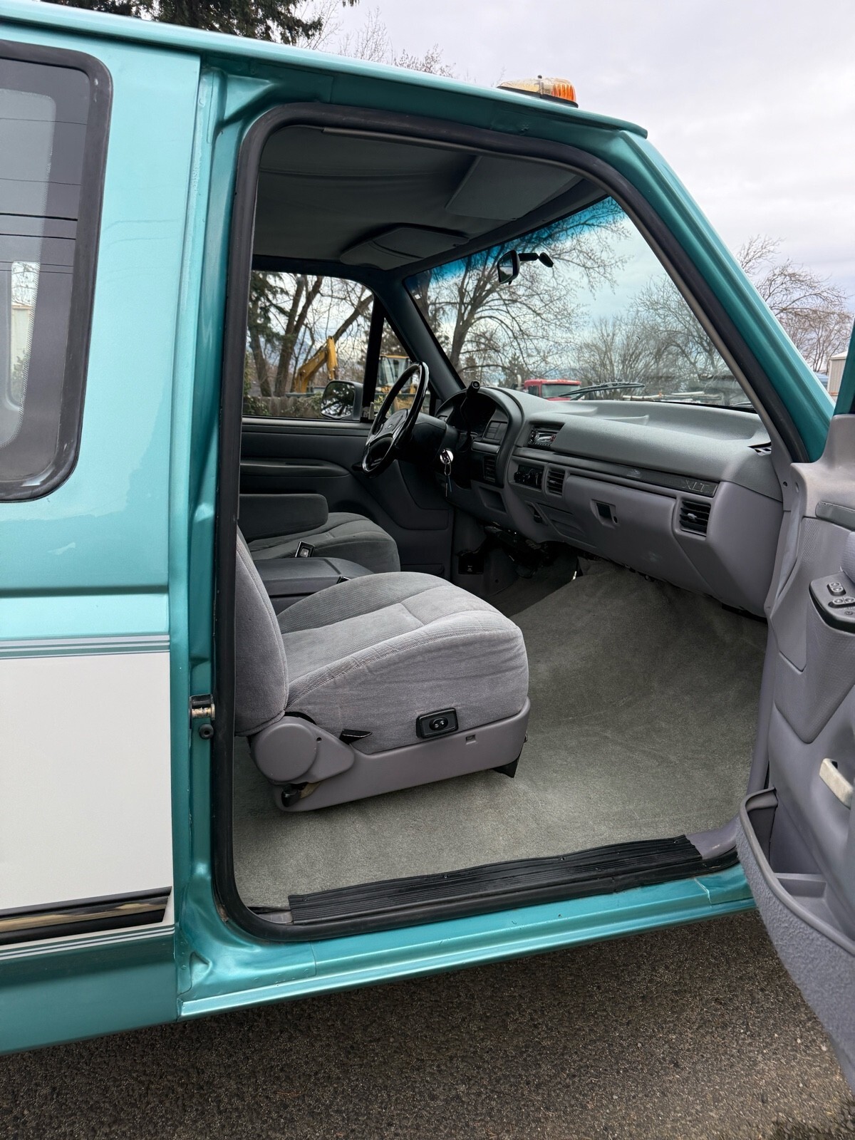Chassis: 1FTHX25G2RKB19430 97k Miles 7.5-Liter V8 Four-Speed Automatic Transmission Tobago Green Clearcoat Metallic & Oxford White Paint Opal Gray Cloth Upholstery 16" Steel Wheels Dually Rear Axle Chrome Bumpers & Trim Sliding Rear Window Receiver Hitch Front Captain's Chairs Air Conditioning Cruise Control Aftermarket CD Stereo