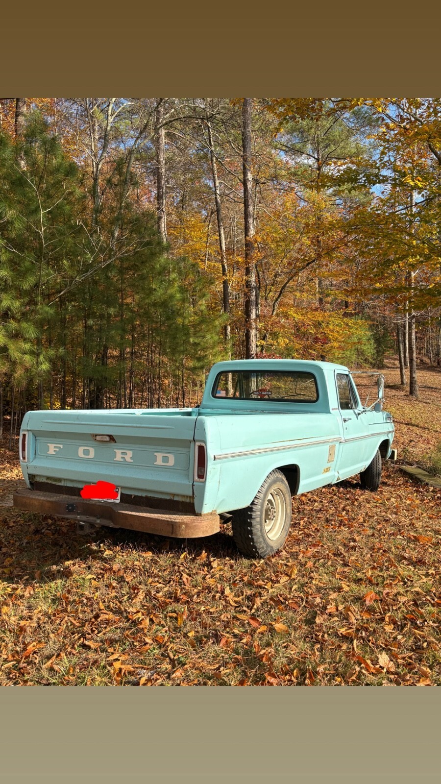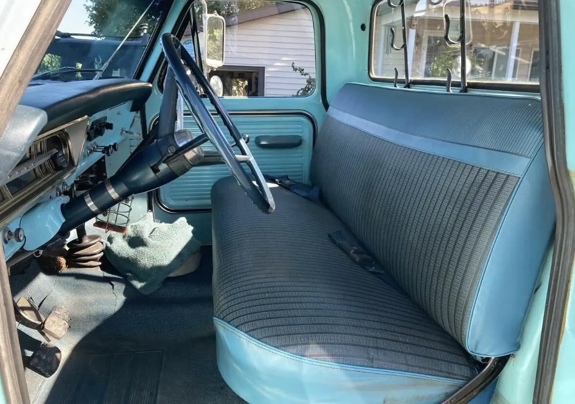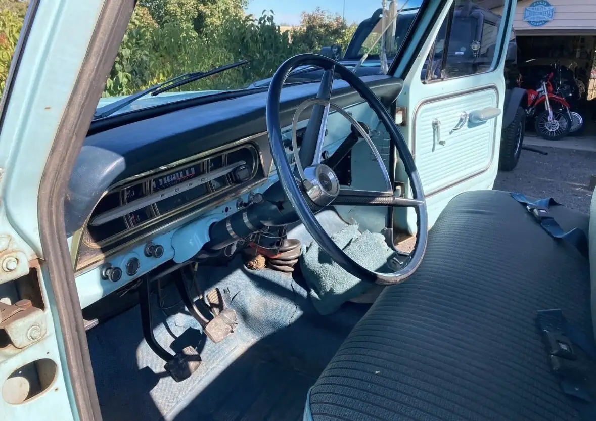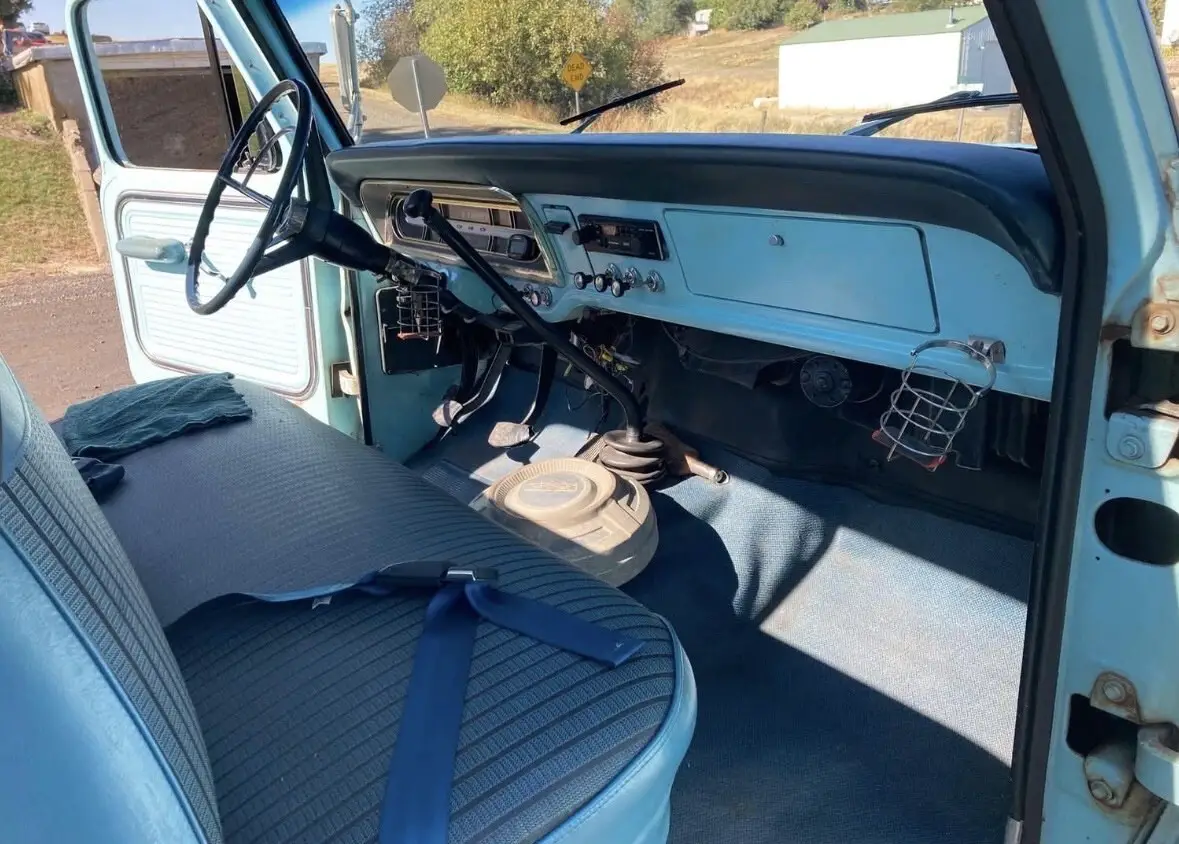 1967 ford f250 Longbed in one year color only frost turquoise blue. TITLE IN HAND! 2 owner only truck. Stunning looking truck sporting her original factory paint. Never had a repaint with beautiful patina. All original interior too in great shape and beautiful gauges with no oxidation. Windows are original and have never been changed too. Won’t find another 67 truck like this one. Work that has been done to this truck include: - Fresh built 390 engine one month fresh from the machine shop - Brakes completely replaced to include: brake wheel cylinders for front right, front left, rear right, rear left, rear wheel seals, brake shoes all around, new drums, brake lines, and brand master brake cylinder - Brand new custom exhaust - Brand new fuel system to include gas tank, fuel sending unit, hoses, and fuel pump. - Upgraded to tough stuff one wire ALT with 150 amp fuse. - Brand new bias ply road tires for the factory steelies - Brand new flywheel, clutch, and bearings - Holley 2300 street avenger carb - Electronic distributor and coil - All guages, lights, and indicators work - All original documentation is accounted for including factory window tag, options sheet from factory, all factory manuals, factory owners manual to this truck specifically, and a book of receipts for everything bought. You are getting a brand new truck with all the work done to her. I drive this truck everyday as a daily driver. She’s been on 10 hour and 12 hour road trips without a problem.