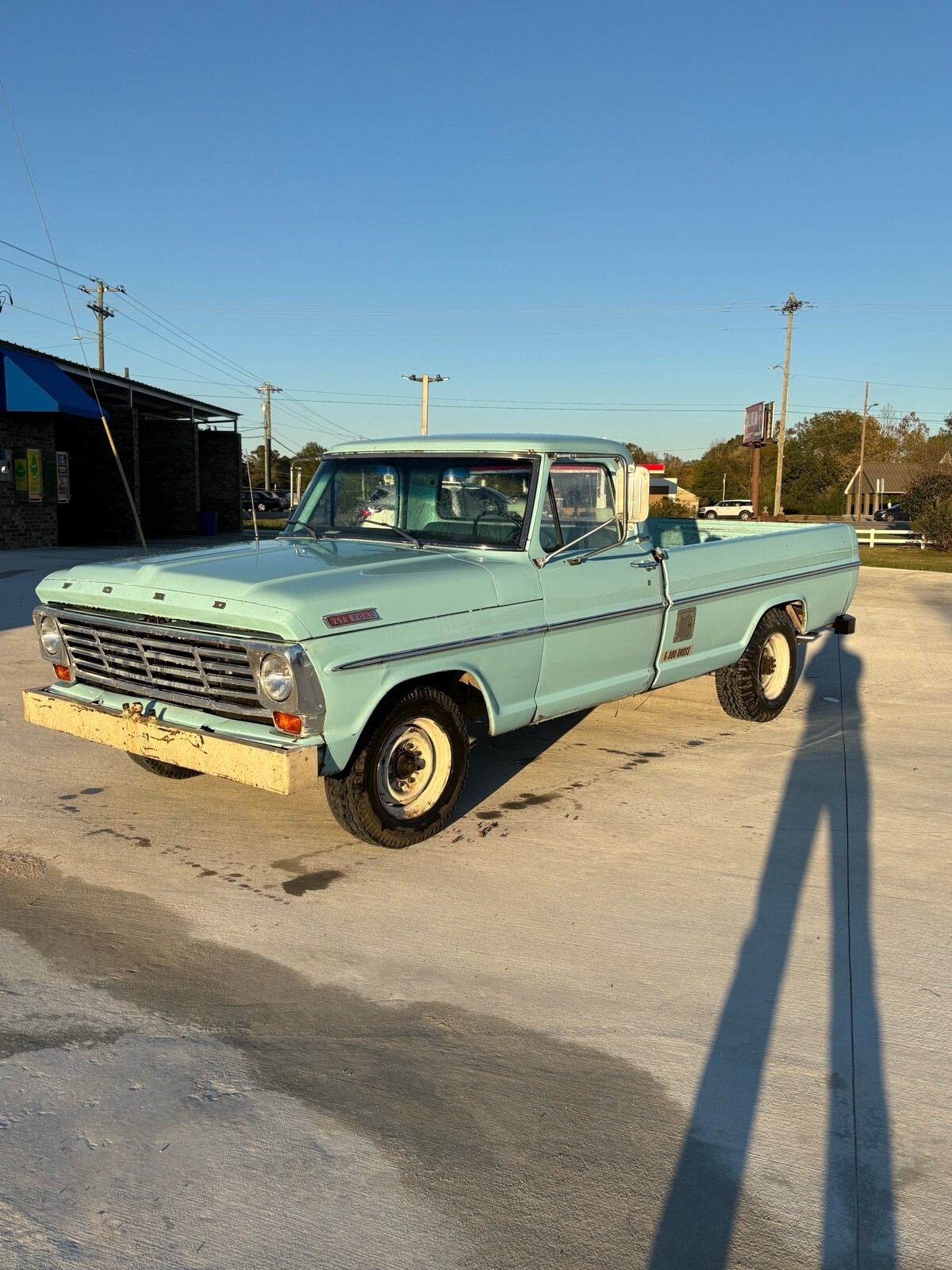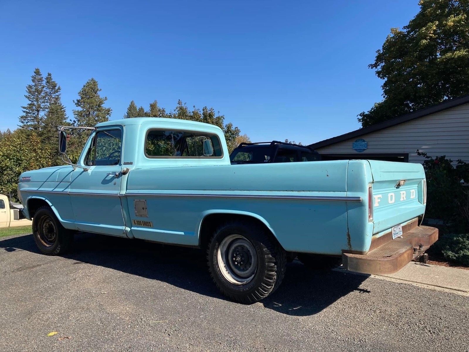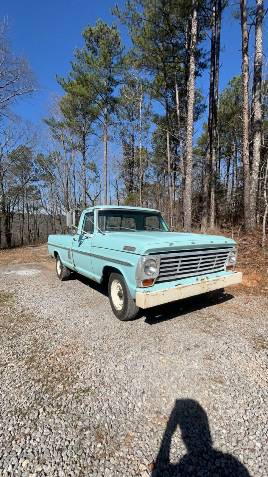 1967 ford f250 Longbed in one year color only frost turquoise blue. TITLE IN HAND! 2 owner only truck. Stunning looking truck sporting her original factory paint. Never had a repaint with beautiful patina. All original interior too in great shape and beautiful gauges with no oxidation. Windows are original and have never been changed too. Won’t find another 67 truck like this one. Work that has been done to this truck include: - Fresh built 390 engine one month fresh from the machine shop - Brakes completely replaced to include: brake wheel cylinders for front right, front left, rear right, rear left, rear wheel seals, brake shoes all around, new drums, brake lines, and brand master brake cylinder - Brand new custom exhaust - Brand new fuel system to include gas tank, fuel sending unit, hoses, and fuel pump. - Upgraded to tough stuff one wire ALT with 150 amp fuse. - Brand new bias ply road tires for the factory steelies - Brand new flywheel, clutch, and bearings - Holley 2300 street avenger carb - Electronic distributor and coil - All guages, lights, and indicators work - All original documentation is accounted for including factory window tag, options sheet from factory, all factory manuals, factory owners manual to this truck specifically, and a book of receipts for everything bought. You are getting a brand new truck with all the work done to her. I drive this truck everyday as a daily driver. She’s been on 10 hour and 12 hour road trips without a problem.