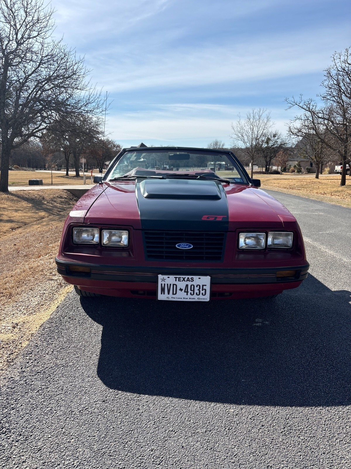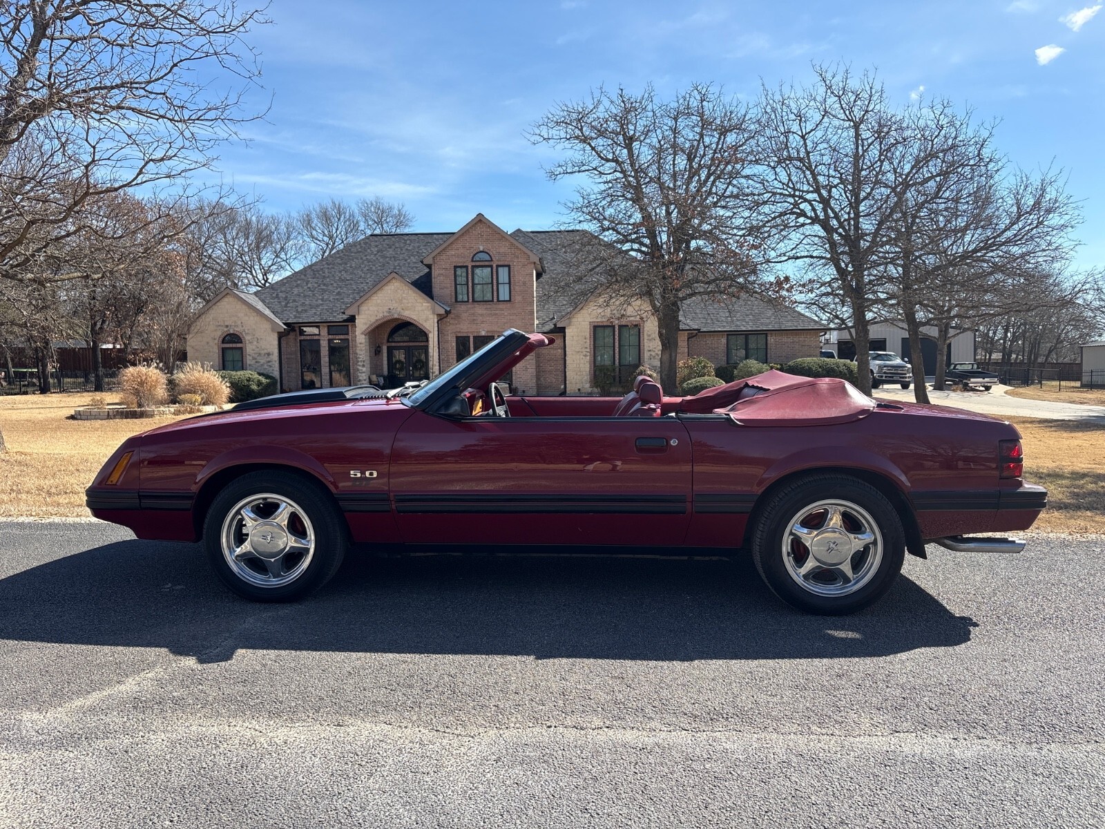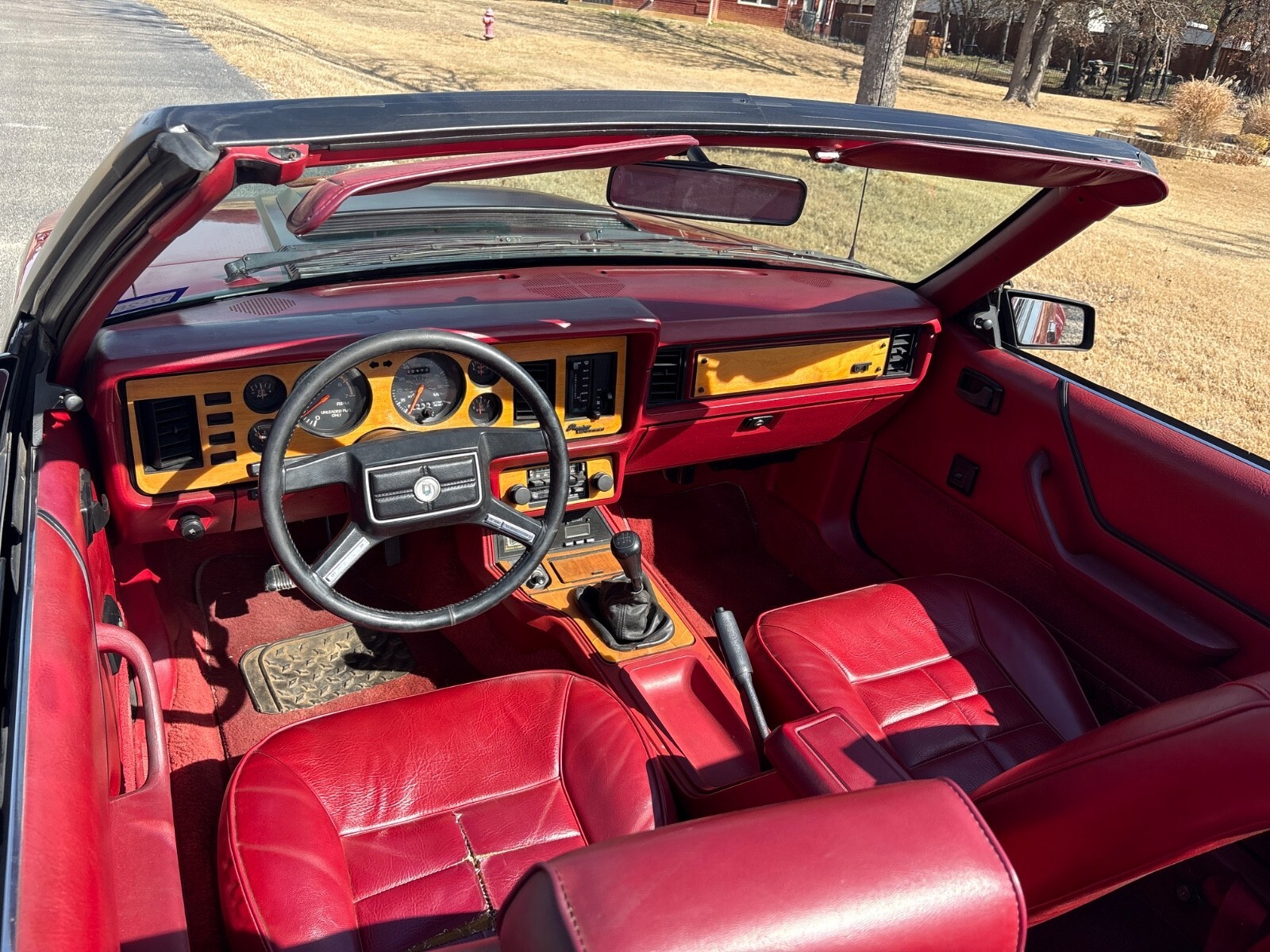 The 1983 Ford Mustang is a classic convertible car with a red interior and burgundy exterior. It has a 5.0L gas V8 engine, manual transmission, and rear-wheel drive. This vehicle has had 2 previous owners and has a mileage of 32,472 miles. It features power windows, climate control, AM/FM stereo, cassette player, tilt steering wheel, power steering, and alloy wheels. With 4 seats and 2 doors, this Mustang is a stylish and iconic choice for car enthusiasts looking for a piece of automotive history.