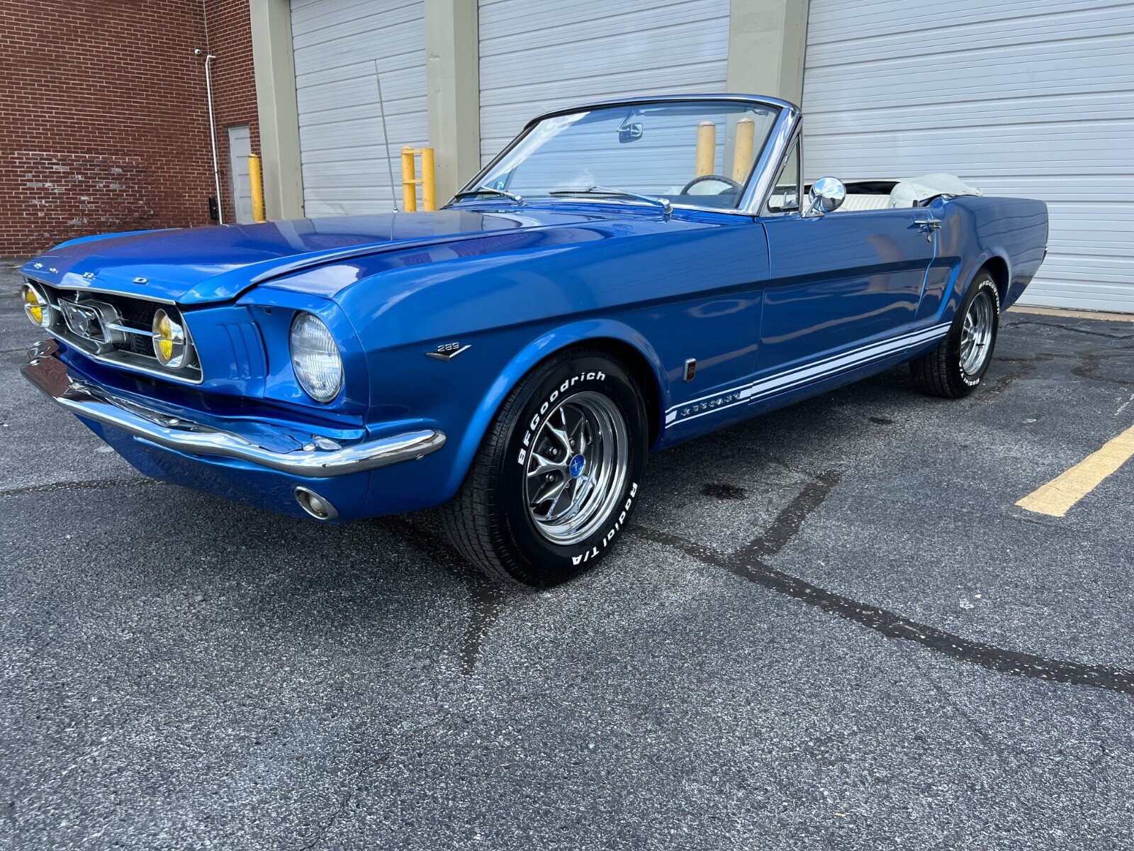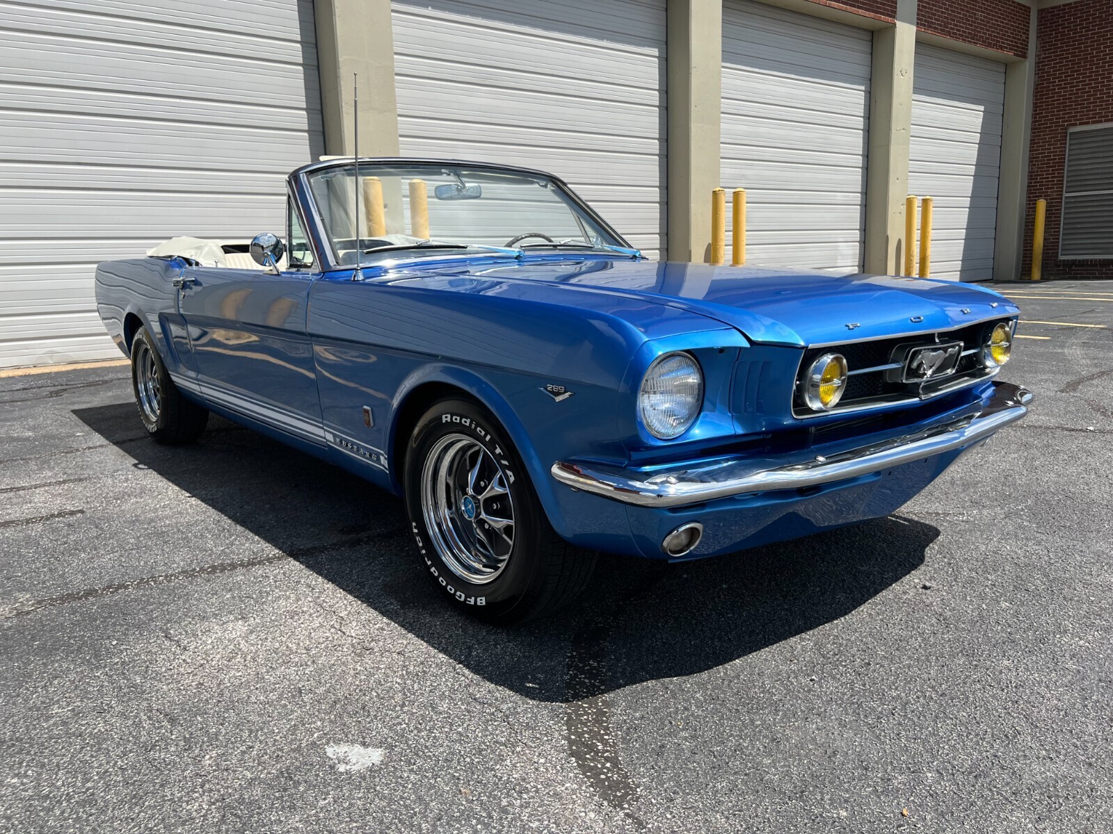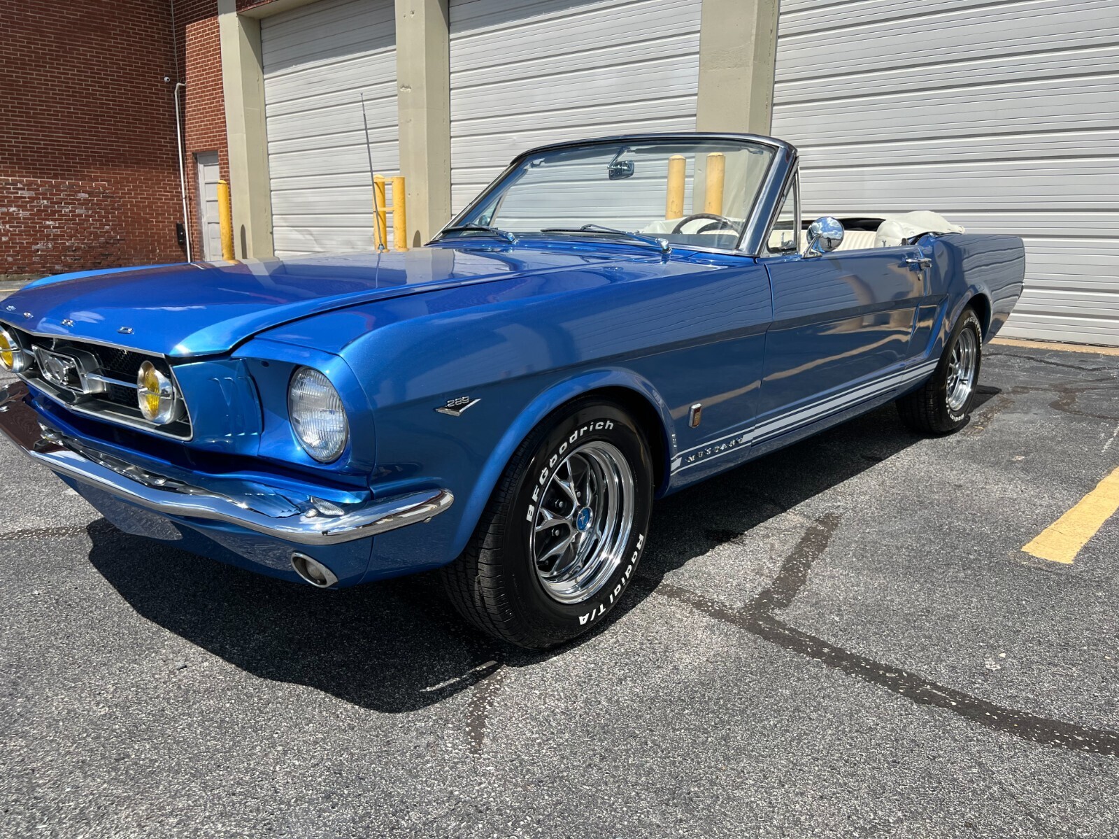 1965 Ford Mustang convertible factory V8. Comes fully loaded with every power option available equipped with upgraded vintage Air conditioning and new style ac compressor, new dryer, condenserand under dash unit, Powerdisc brakes and power steering upgraded by Borgesson power steering system. Medium Blue metallic with a white deluxe Pony interior. Equipped with a rebuilt 289 c.i engine as well as a rebuilt C4 automatic transmission. The car was just painted in a base coat clear coat system. The Mustang was completely disassembled. All new chrome inside and out was installed after the paint job. All new front suspensionand rear shocks new front end suspension upgraded for a better ride. New fuel tank and GT exhaust system. B.f Goodrich tires and new Mustang styled steel wheels. The floors and undercarriage were sandblasted and professionally repainted. One of the nicest under carriages you will find on a classic mustang. The convertible top was also completely redone the frame for the top was redone, new well liner, convertible top pad, new interior. Including new carpet, seat tracks, seat foam, door panels and handles, sun visors, seat belts, and carpet as well as a nice center console for comfort. New rubber and seals were replaced. The mustang has upgradedfront power disk brakes. As well as a Willwood style power brake booster and master cylinder. If you are looking for an excellent running and driving car that has been nicely maintained and restored with all the upgraded power options, you will not find too many in better shape than this one. Numerous other options and mechanical work has been done to this beauty. You will not drive a mustang that drives as smooth as this one. If you have any questions please email me thanks