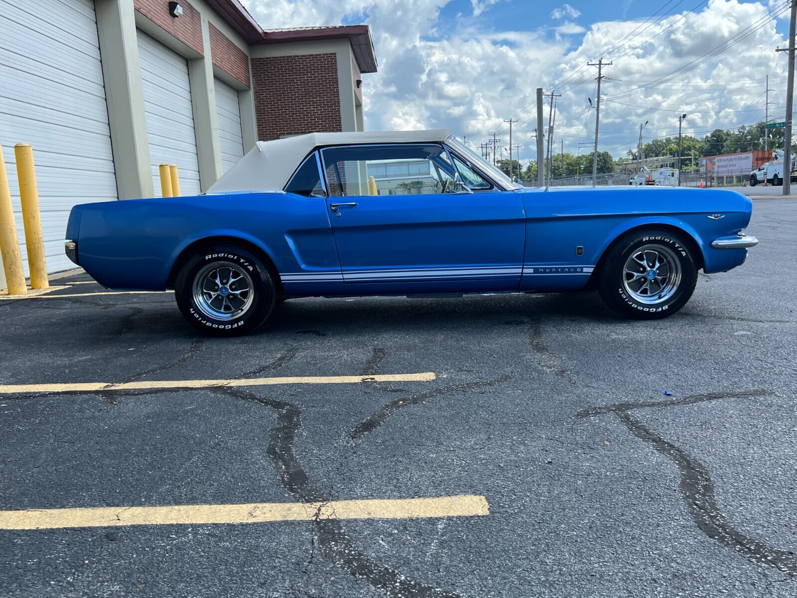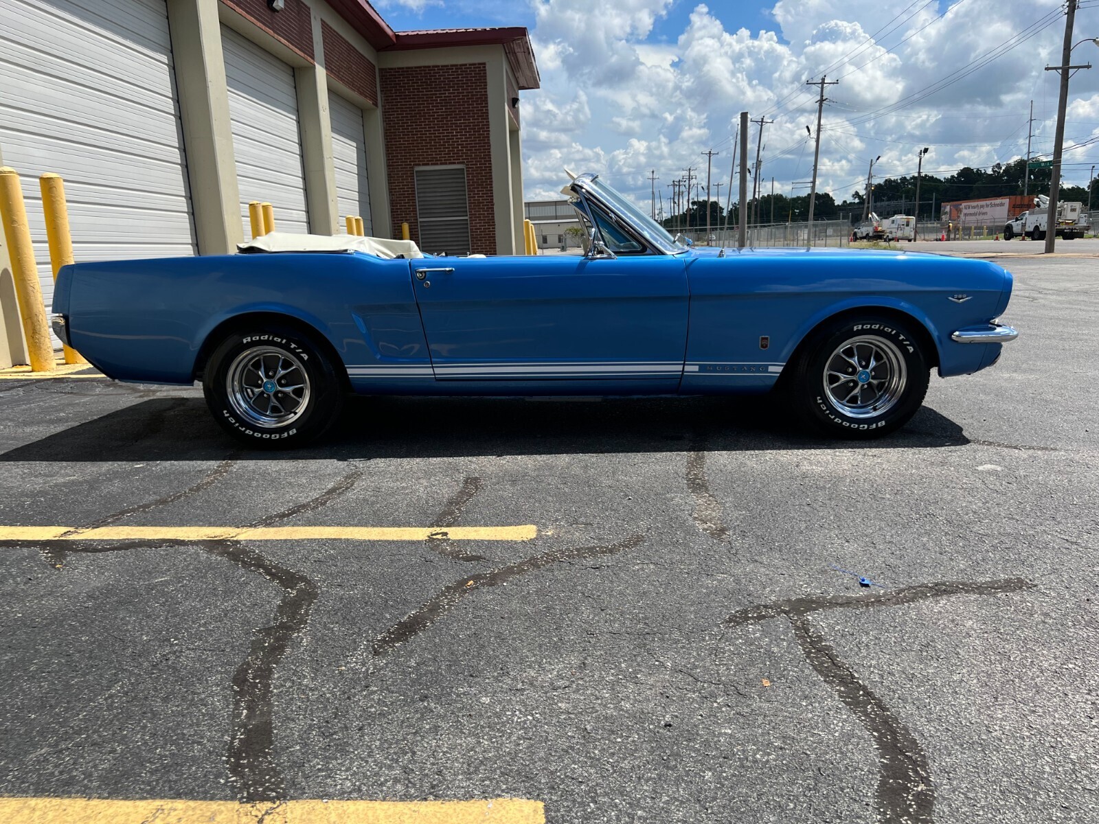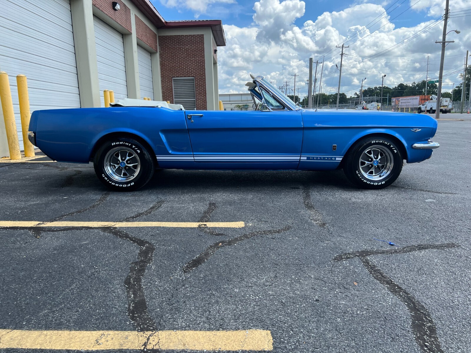 1965 Ford Mustang convertible factory V8. Comes fully loaded with every power option available equipped with upgraded vintage Air conditioning and new style ac compressor, new dryer, condenserand under dash unit, Powerdisc brakes and power steering upgraded by Borgesson power steering system. Medium Blue metallic with a white deluxe Pony interior. Equipped with a rebuilt 289 c.i engine as well as a rebuilt C4 automatic transmission. The car was just painted in a base coat clear coat system. The Mustang was completely disassembled. All new chrome inside and out was installed after the paint job. All new front suspensionand rear shocks new front end suspension upgraded for a better ride. New fuel tank and GT exhaust system. B.f Goodrich tires and new Mustang styled steel wheels. The floors and undercarriage were sandblasted and professionally repainted. One of the nicest under carriages you will find on a classic mustang. The convertible top was also completely redone the frame for the top was redone, new well liner, convertible top pad, new interior. Including new carpet, seat tracks, seat foam, door panels and handles, sun visors, seat belts, and carpet as well as a nice center console for comfort. New rubber and seals were replaced. The mustang has upgradedfront power disk brakes. As well as a Willwood style power brake booster and master cylinder. If you are looking for an excellent running and driving car that has been nicely maintained and restored with all the upgraded power options, you will not find too many in better shape than this one. Numerous other options and mechanical work has been done to this beauty. You will not drive a mustang that drives as smooth as this one. If you have any questions please email me thanks
