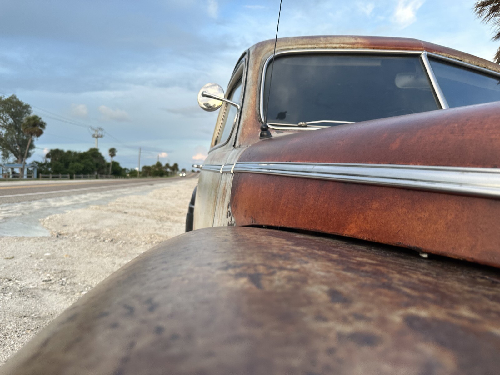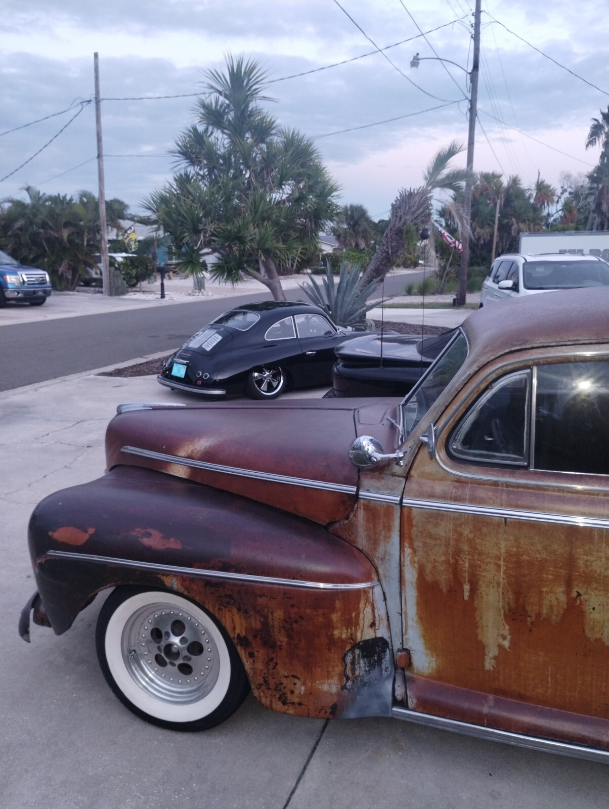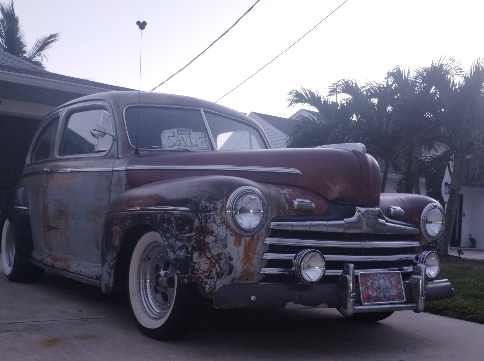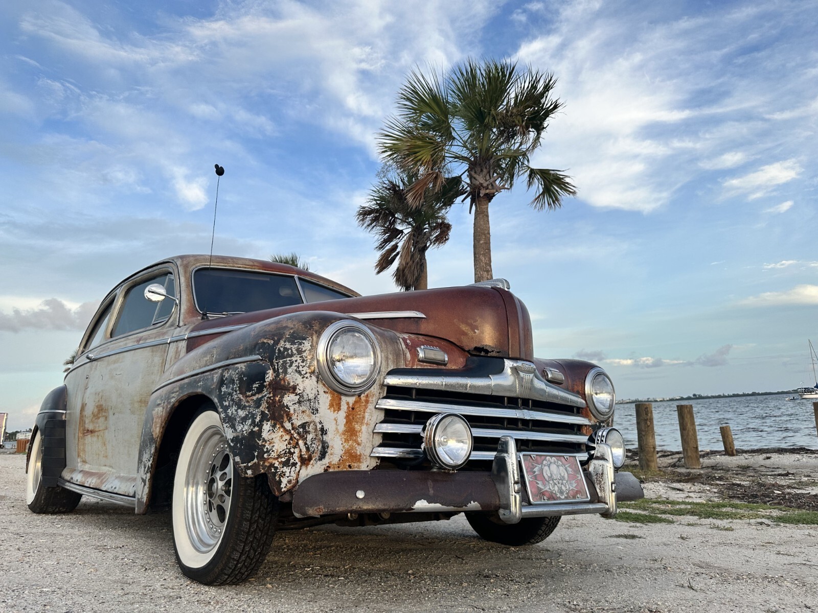 Badass Rat Rod Beach Cruiser1946 Ford two-door Super Deluxe Tudor sedan 350 4-bolt main with girdles, solid lifters and roller rockers 650 double pumper Holley with Edelbrock Victor Jr. intake, Edelbrock valve covers and Edelbrock air cleaner.. ram horn exhaust manfolds and dual exhaust with cherry bomb glasspacks... 700 R4 for speed automatic transmission with overdrive with a 2500 stall converter... The rear end is a 64 Nova posi-track with drum brakes... With twin leaf springs, ladder bars and Gabriel air shocks