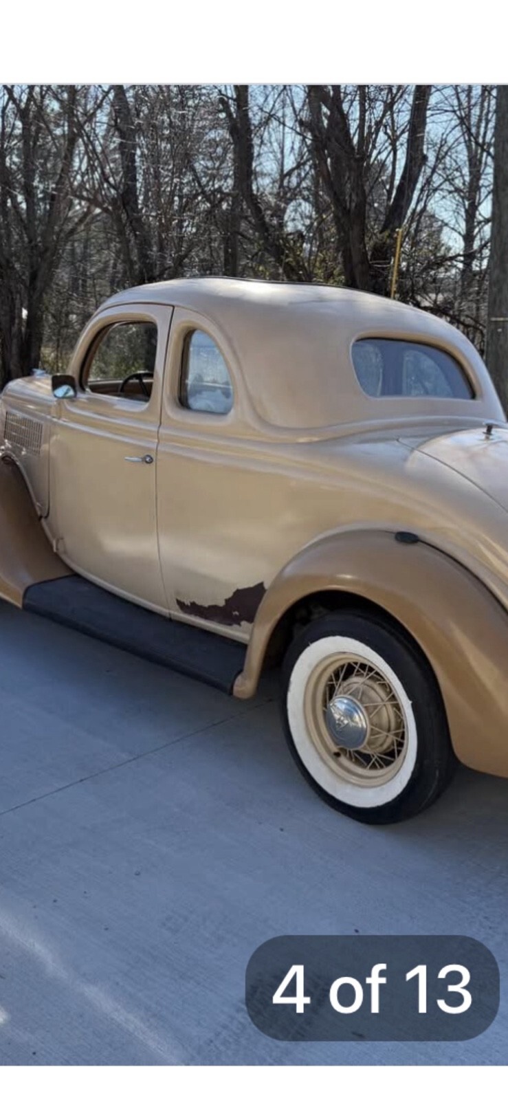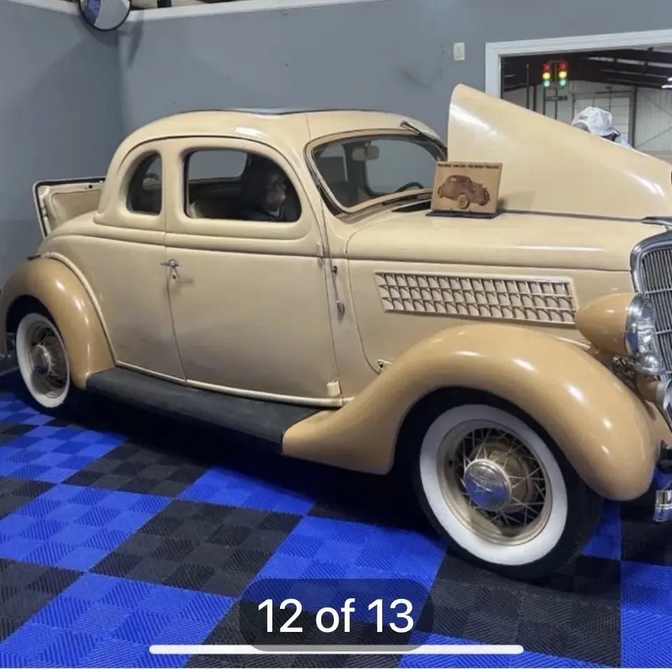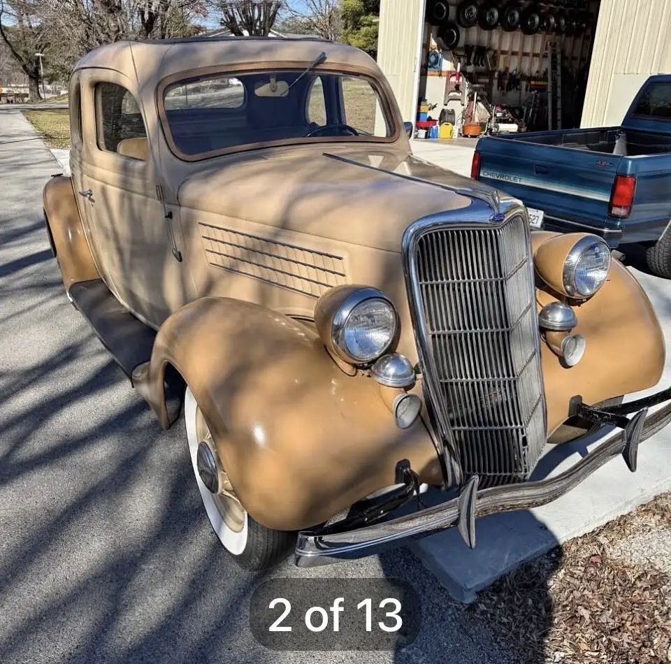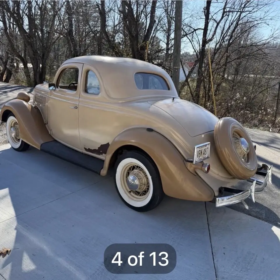 1935 Ford coupe five window w/ rare rumble seat, 56,000 miles, 1st year bigger 85 hp flathead V8, car is in good overall drivers condition. 12v system with hydraulic brakes. Original steel body. Solid frame, body is straight w/ a few paint chips and peeling off on drivers side she is solid sturdy driver car as is. Everything works including heat, radio and wipers. All windows doors and latches work as they should. If it’s listed it available. Not answering a million questions. Serious inquiries only! Buyer is responsible for pickup or shipping. May trade for good driver classic chevelle gto