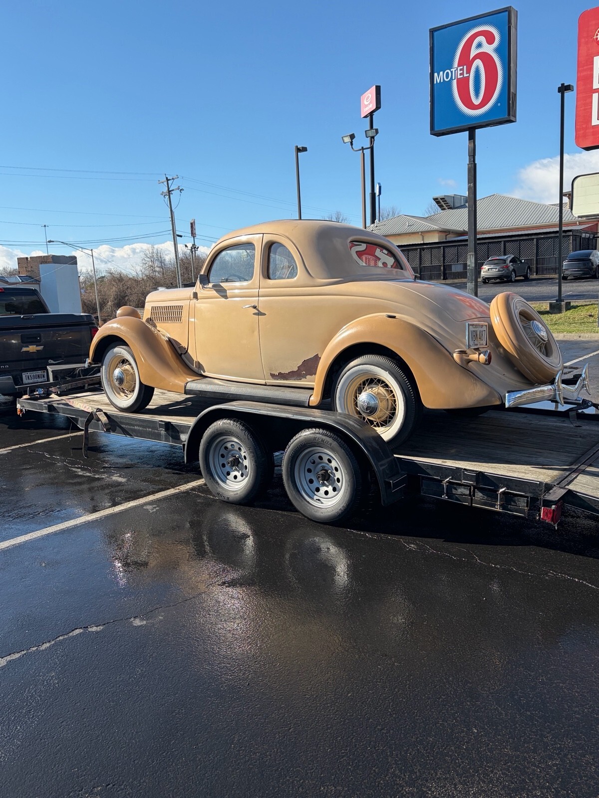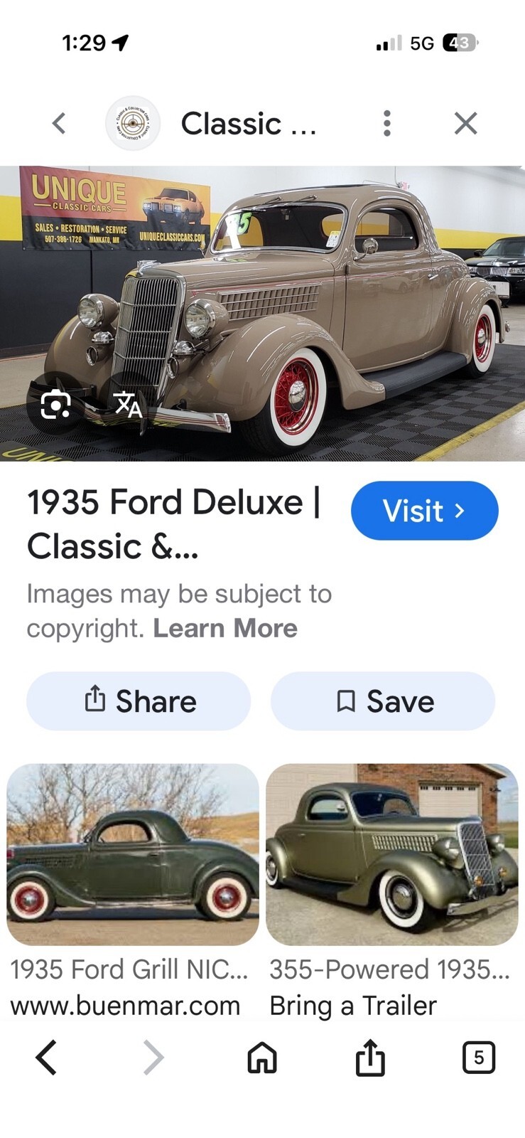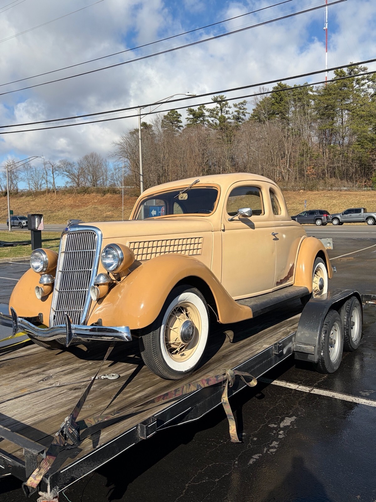 1935 Ford coupe five window w/ rare rumble seat, 56,000 miles, 1st year bigger 85 hp flathead V8, car is in good overall drivers condition. 12v system with hydraulic brakes. Original steel body. Solid frame, body is straight w/ a few paint chips and peeling off on drivers side she is solid sturdy driver car as is. Everything works including heat, radio and wipers. All windows doors and latches work as they should. If it’s listed it available. Not answering a million questions. Serious inquiries only! Buyer is responsible for pickup or shipping. May trade for good driver classic chevelle gto