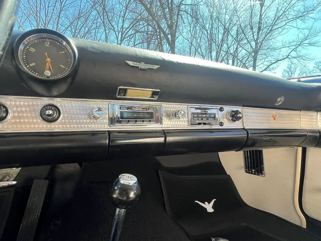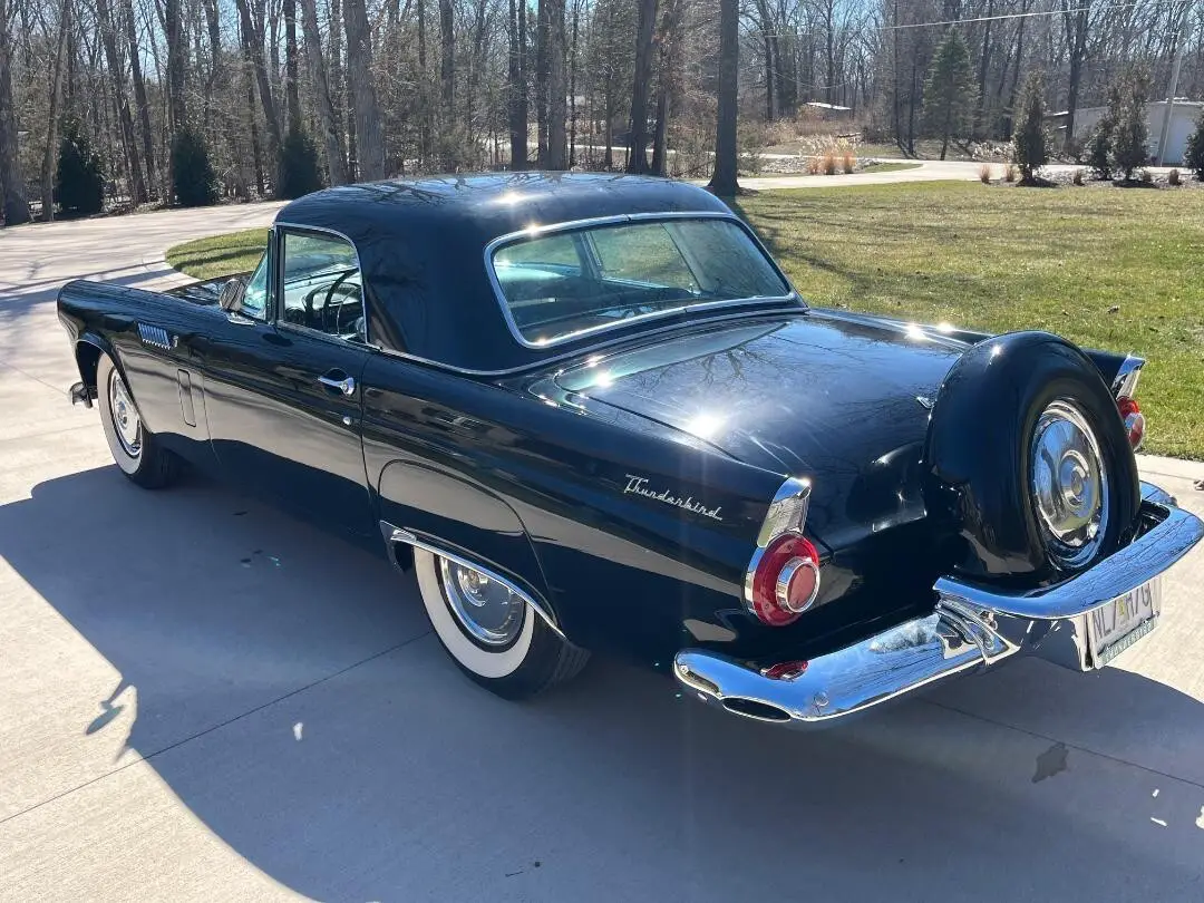 I am selling this 1956 Ford Thunderbird I finished the restoration on. I bought it from a restoration shop in Wisconsin a while back that did the full body and paint with frame off restoration started. They started with a rust free all original sheet metal car. NO repair panels or patches. Floors and all body supports are original and look perfect as seen in photos. The engine was totally rebuilt by a reputable builder as well as the transmission and rear end. They were installed but never ran. The project went unfinished for years as the client couldn't follow through on his end, so the project was sold. That is where I came in. All the chrome was rechromed professionally. The wiring was all checked, cleaned and reused as it was in great condition. Seats were all redone as well as Dash. All lights work as well as gauges and horn. Disc brake conversion and Rebuilt P/S control valve and ram. New door panels and weatherstripping too. New gas tank and sender, new aluminum radiator but original shroud and fan. New Auto sound radio that works well. Power seat, power steering, A/T. The car is totally correct with all original body and drivetrain. No patch panels or bondo in it. How often do you find a 56 Thunderbird that is all original panels? Look at photos and you will see how clean and original it is.