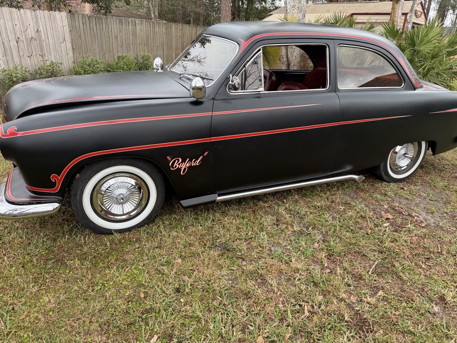 This 1951 Ford Coupe is a classic and modified vehicle that has been updated with modern touch-ups to the exterior, interior, and drivetrain. The owner has had it for over 5 years and has mainly used it for car shows. With a sleek black color, this Ford Coupe drives smoothly with 67,100 miles on the odometer. Perfect for collectors or those looking to add a vintage touch to their car enthusiast collection.