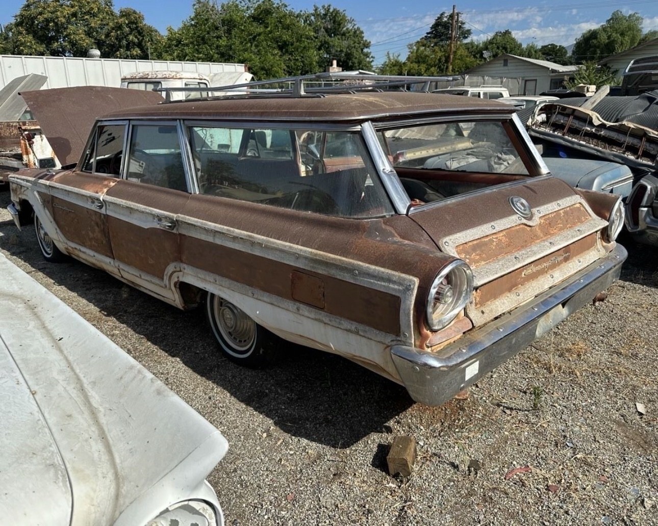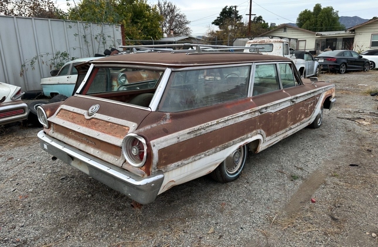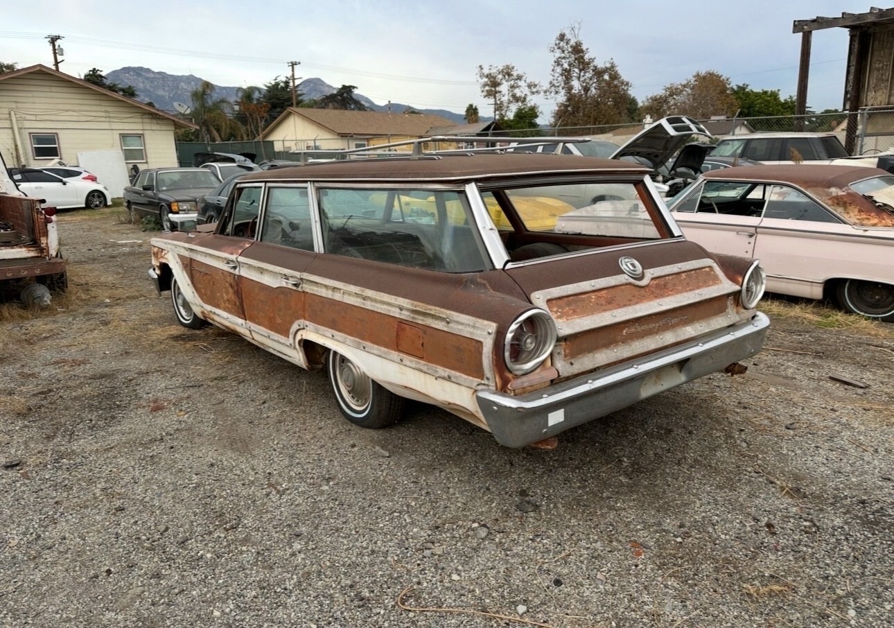 Here is a super original 1963 ford country squire. This car was acquired from the famous cuyama car garden in maricopa California. Car was parked in the 70s The car runs drives and stops. Has new brake shoes, hoses and wheel cylinders and new master cylinder. The original steel wheels were blasted and painted in the correct white color and new tires installed.