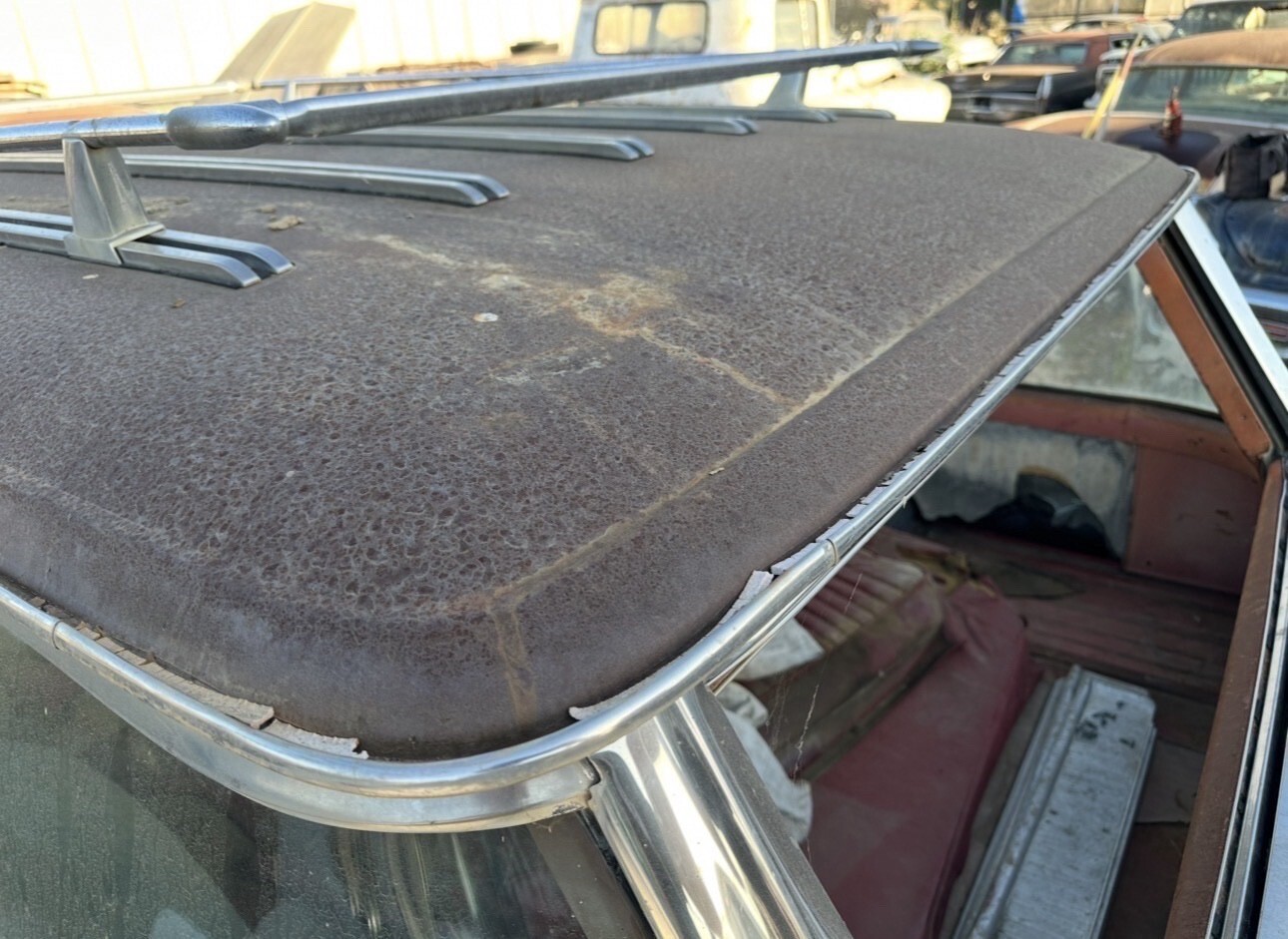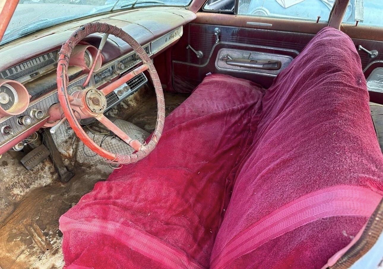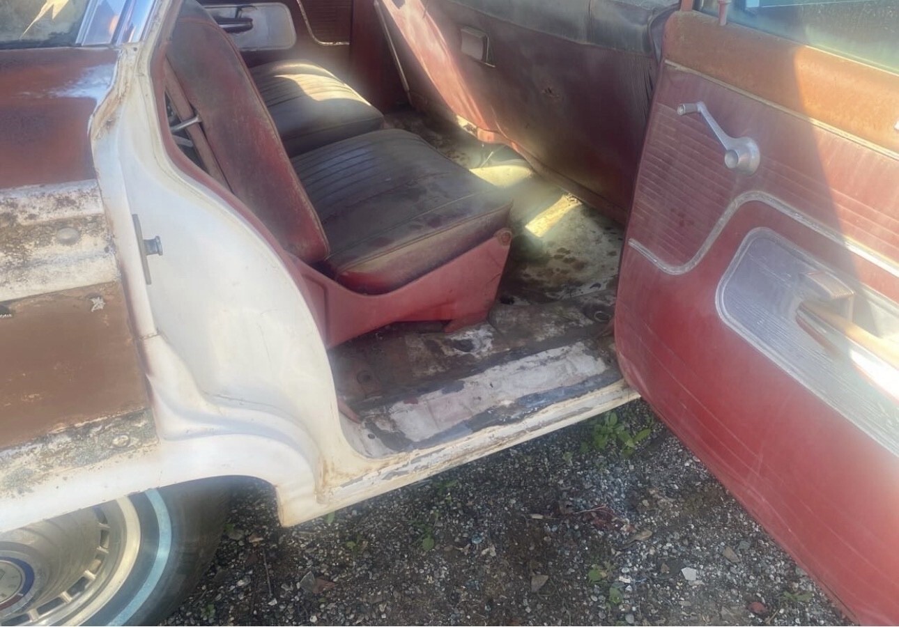 Car has the 352 FE big block with automatic transmission. Windshield has cracks. The rear tail gate glass is intact just rolled down. Car starts up every time and runs strong. It will need the cooling system gone through. Radiator and hoses should be cleaned and replaced. No you can’t drive it home. It is a project. I move it around the lot regularly and never have any issues with it