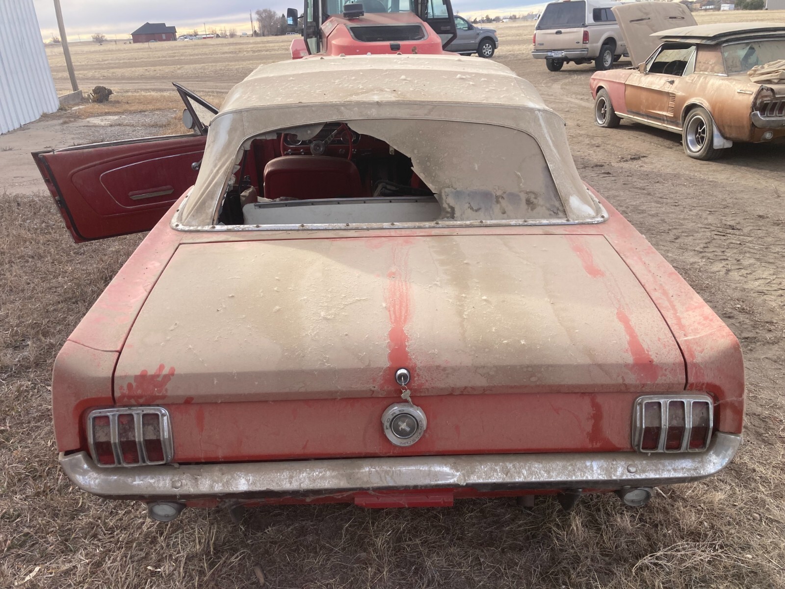 Here we have a 19641/2 FORD mustang "D" code convertible selling as a project vehicle for rebuilding. Purchased by us in the early 90's from an estate sale and stored until recently. The original engine was rebuilt by the previous owner who passed away leaving the engine not installed. The engine turns freely, and although shows surface rust, has obviously been rebuilt. We pulled valve covers to take a look at the state of internal rust, for you to see here. This is a 289 4V, top loader 4 speed vehicle. Vehicle was stored inside closed storage, not exposed to the weather, for the last 30 plus years. Vehicle is about 95% complete, including power train, radiator, misc. engine parts including original 4V carb, generator and starter ect. as shown. Although the outer sheet metal is quite solid, the floors, inner rockers and rails are showing rust problems as shown. Most all the unique parts associated to a true 641/2 Mustang are intact and included as shown. The engine assembly was set back in the vehicle for transport. Vehicle rolls and steers easily and can be professionally loaded at our location. This vehicle comes with a clear Colorado title from our licensed dealership. Please contact us for any questions you might have, or for specific pictures. Buyer will have to arrange shipping or pick up
