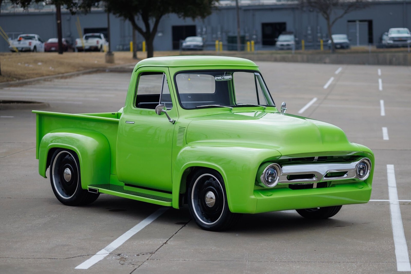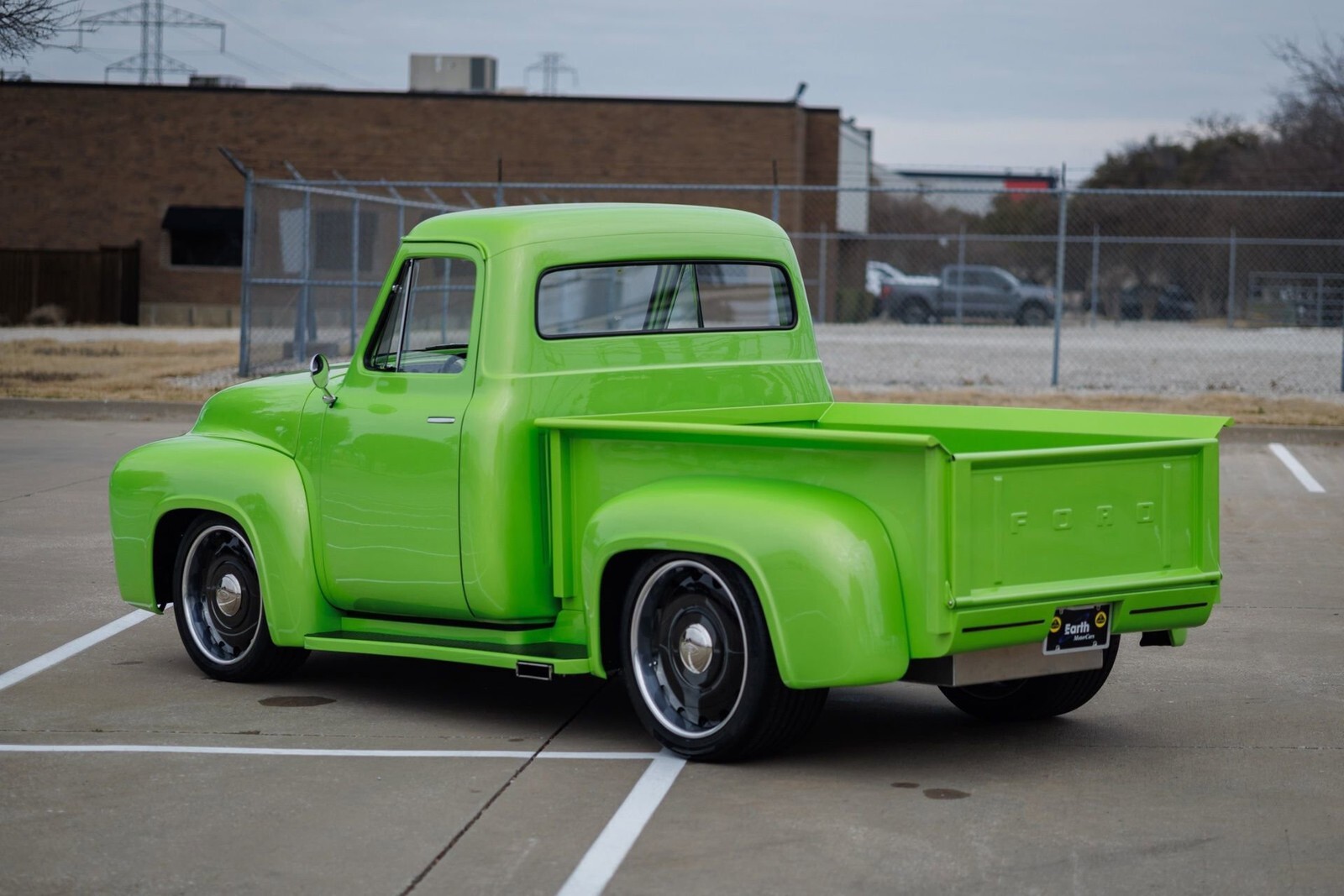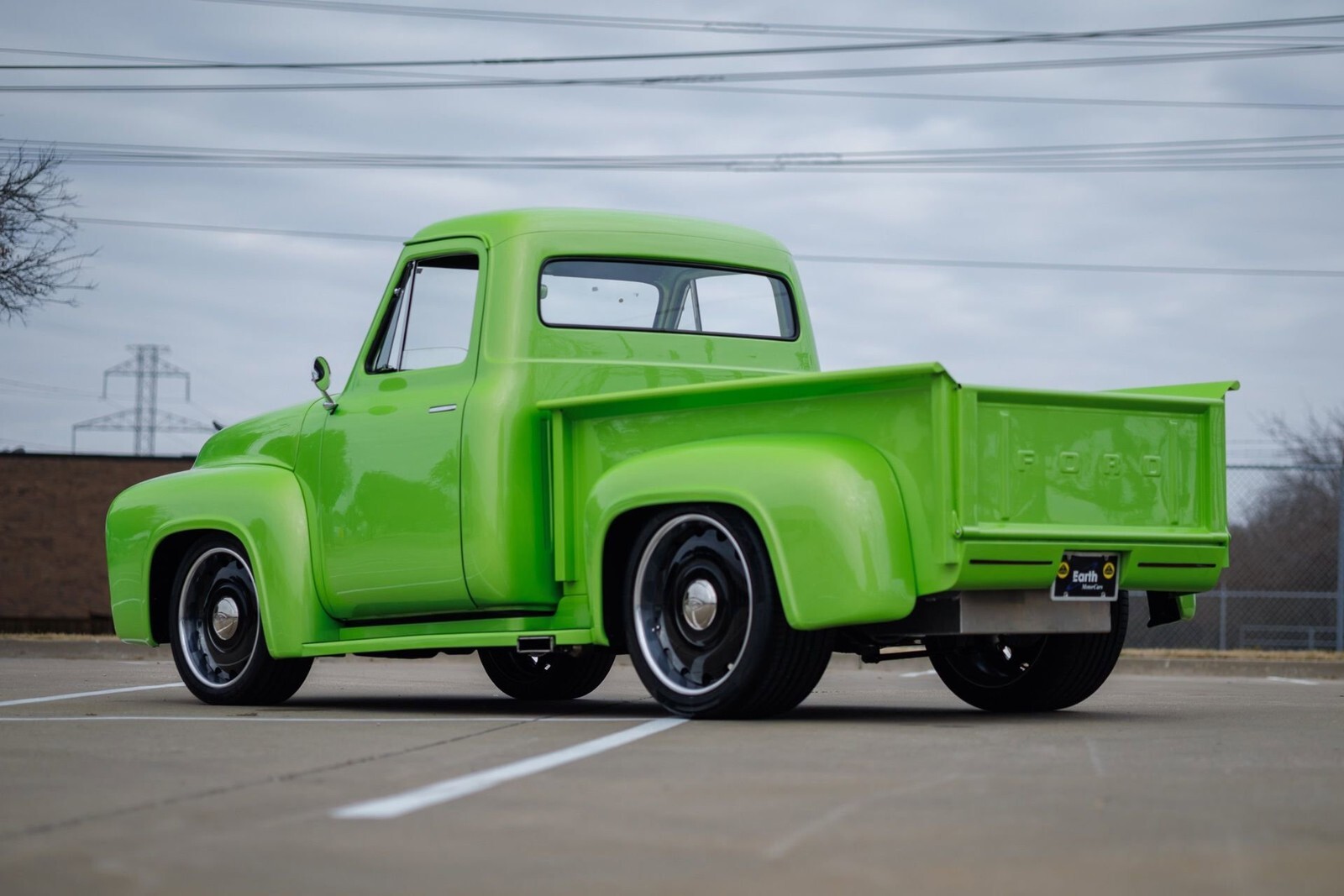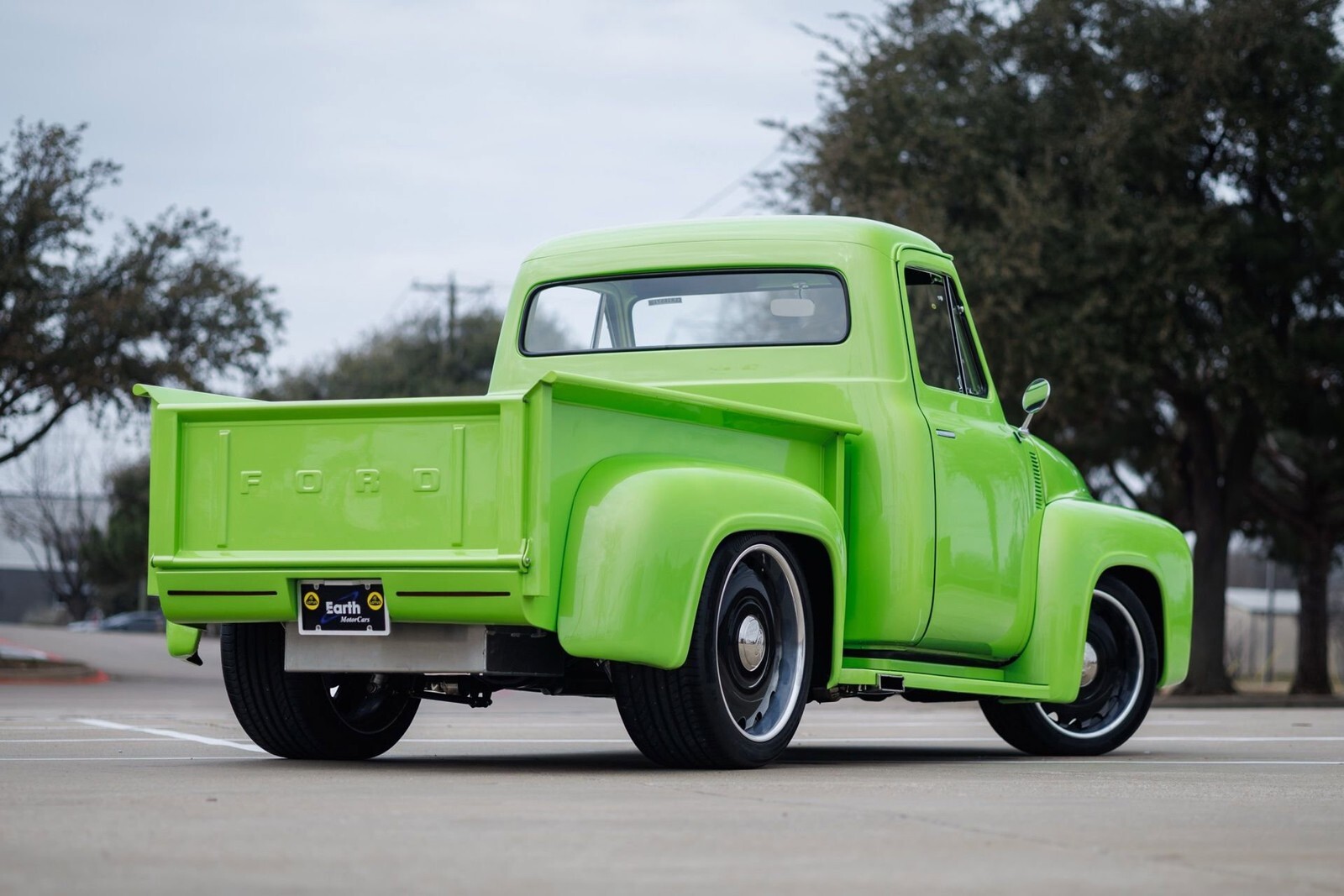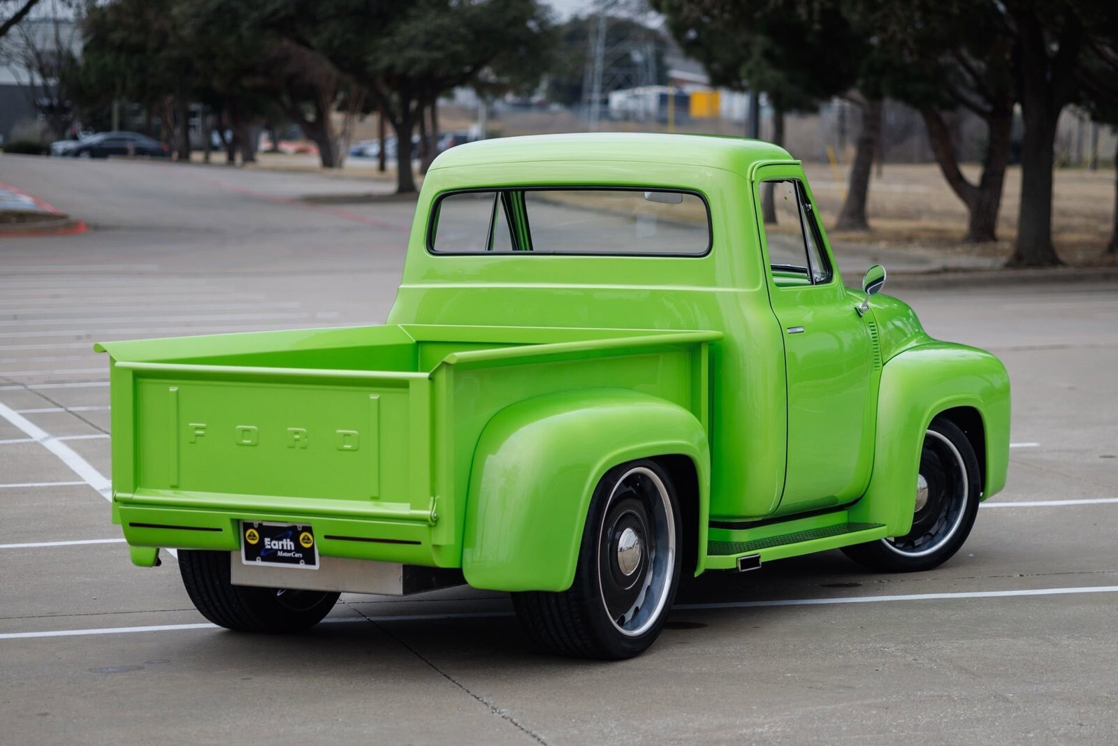Earth MotorCars is proud to present this: STUNNING 1955 Ford F-100 Restomod. This truck has undergone a complete rotisserie restoration with no expense spared. An incredibly thorough build ready to show and drive anywhere.Features Include:300K+ Build with less than 1k miles since completion!Extremely Detailed Rotisserie RestorationRefinished in Lamborghini's Iconic Verde Ithaca MetallicFord Performance 5.0L Coyote V8 EngineBOSS 302 Intake ManifoldCustom Fabricated Oil Pan to fit Sway BarCustom Roller Hood Setup4R70W 4-Speed Automatic TransmissionModified Chassis with Heidts Mustang II IFSFront Tubular A-Arms and Viking Performance Adj. CoiloversRack and Pinion Power SteeringHeidts Rear 4-Link with Adj. Viking Perf. CoiloversWilwood 4-Wheel Power Disc Brakes // Drilled and Slotted RotorsStaggered Powder Coated Black U.S. Mags Wheels255/40ZR20 Fronts and 325/35ZR22 Rears all on Continental ContiSport Contact 5P Performance TiresCurrie Enterprises Rear Axle paired with a Ford 9" Rear End 3.50:1Complete Flowmaster Exhaust // X-PipeC-Notched Rear FrameALL CUSTOM INTERIORLeather Front Seats with Built-In Cupholders!Flush Mount Exterior Handles // Custom Interior ArmRest HandlesShaved Bumpers and Badges for a Seamless BuildComplete Sound System ft:-Rockford Fosgate Punch Amplifier-Rockford Fosgate 10" Subwoofer-Hertz 3-Way Crossover (2)-Hertz 6" Kickpanel Speakers and Tweeters-Alpine Head UnitUpgraded Headlights and LED TaillightsModified Running Boards to Custom-Fit ExhaustRed Oak Wood Bed Flooring and Strut-Supported TailgateTruly no expense spared on this build.All of our classic cars go through our rigorous inspection and items that need repair get fixed unlike cars bought at auctions, So rest assured that you are getting a quality classic car! All classics are sold Miles Exempt regardless of what the odometer shows. This vehicle may be eligible for our EXTENDED WARRANTY that covers a wide variety of components (certain exclusions apply).....Please ask your sales representative for details. Welcome to Dallas Fort Worth's Premier Lotus, Luxury, Exotic and Classic Cars Dealership. We specialize in offering the Finest Vehicles, Providing Outstanding Customer Service, Obtaining the Best Financing Options and Stocking a Large Selection of Luxury Vehicles, Exotics, Classic Cars and More! See for Yourself what Thousands of Customers have Discovered over the Years and Make your Next Purchase from Earth MotorCars! Our Goal is to Make you a Customer for Life! Learn more about us by calling 214-483-9040 or via e-mail at sales@earthmotorcars.com. Visit us on our Website at www.earthmotorcars.com.