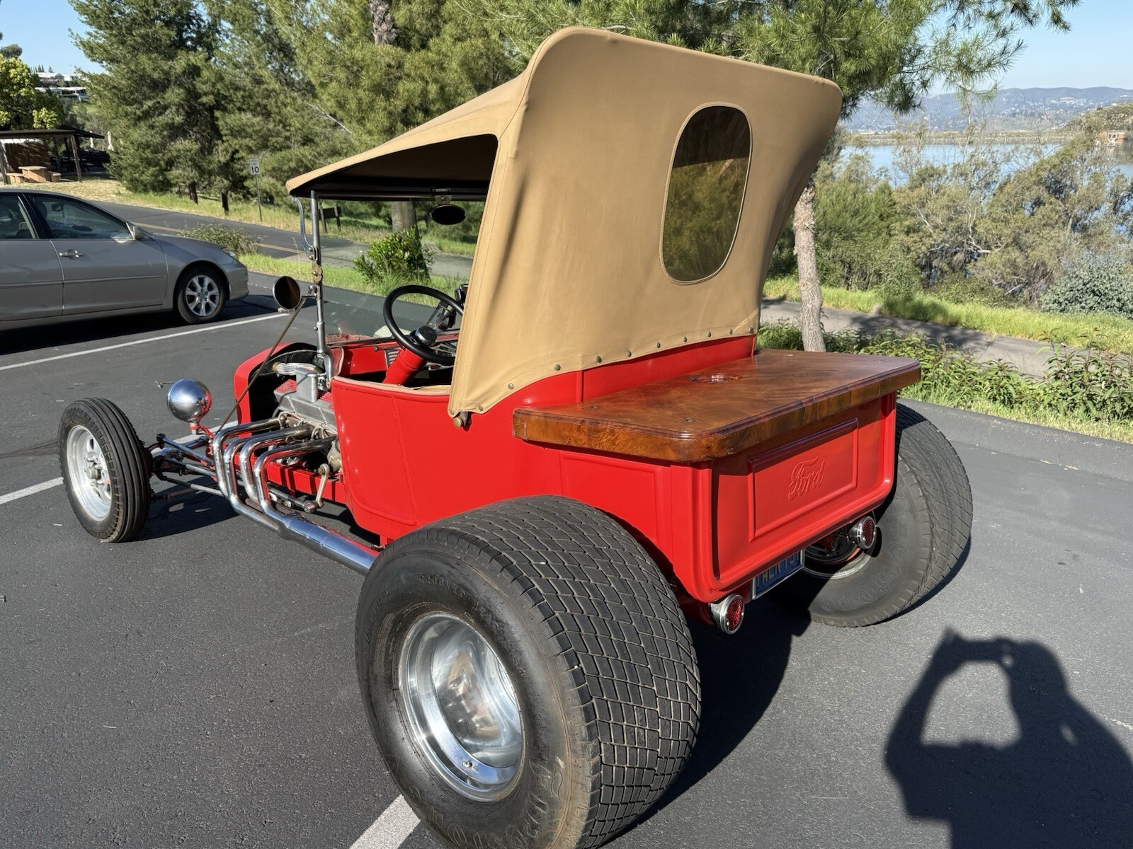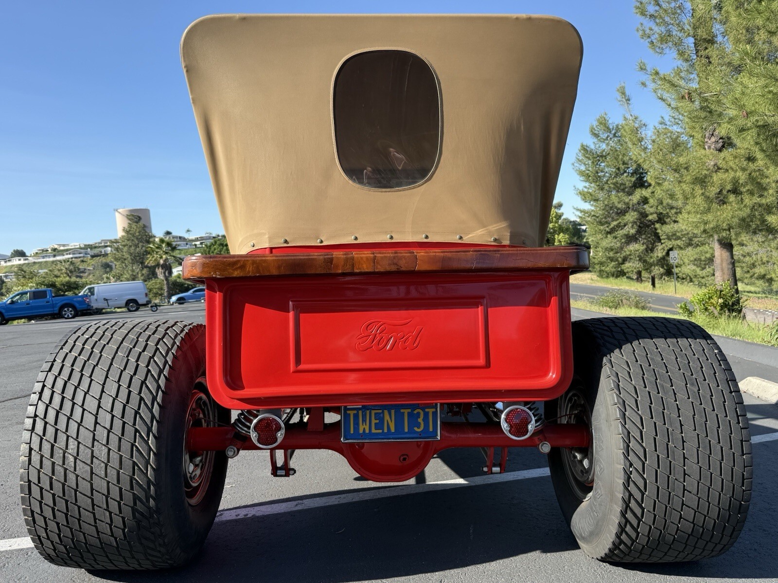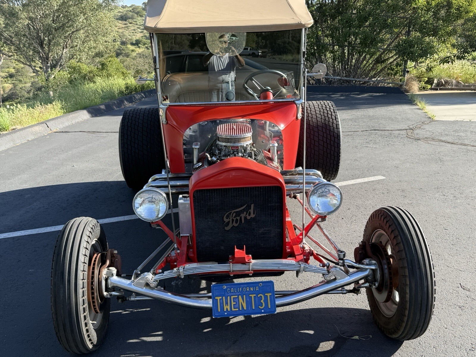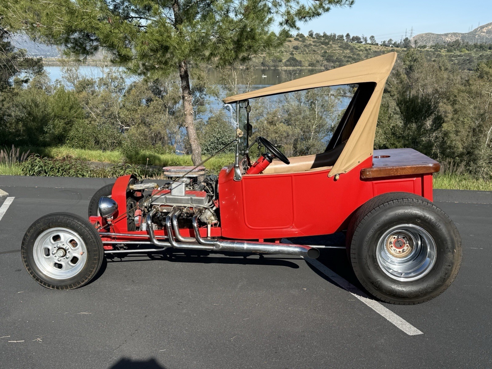 The 1923 Ford Model T is a classic t bucket convertible with a tan interior and red exterior. This vintage car features a 5.7 L engine with 8 cylinders, auto 2-speed transmission, and rear-wheel drive. With only 20,084 miles on the odometer, this vehicle has had 2 previous owners and is in clean condition. Perfect for automotive enthusiasts looking to own a piece of American automotive history, this Ford Model T is sure to turn heads on any road.