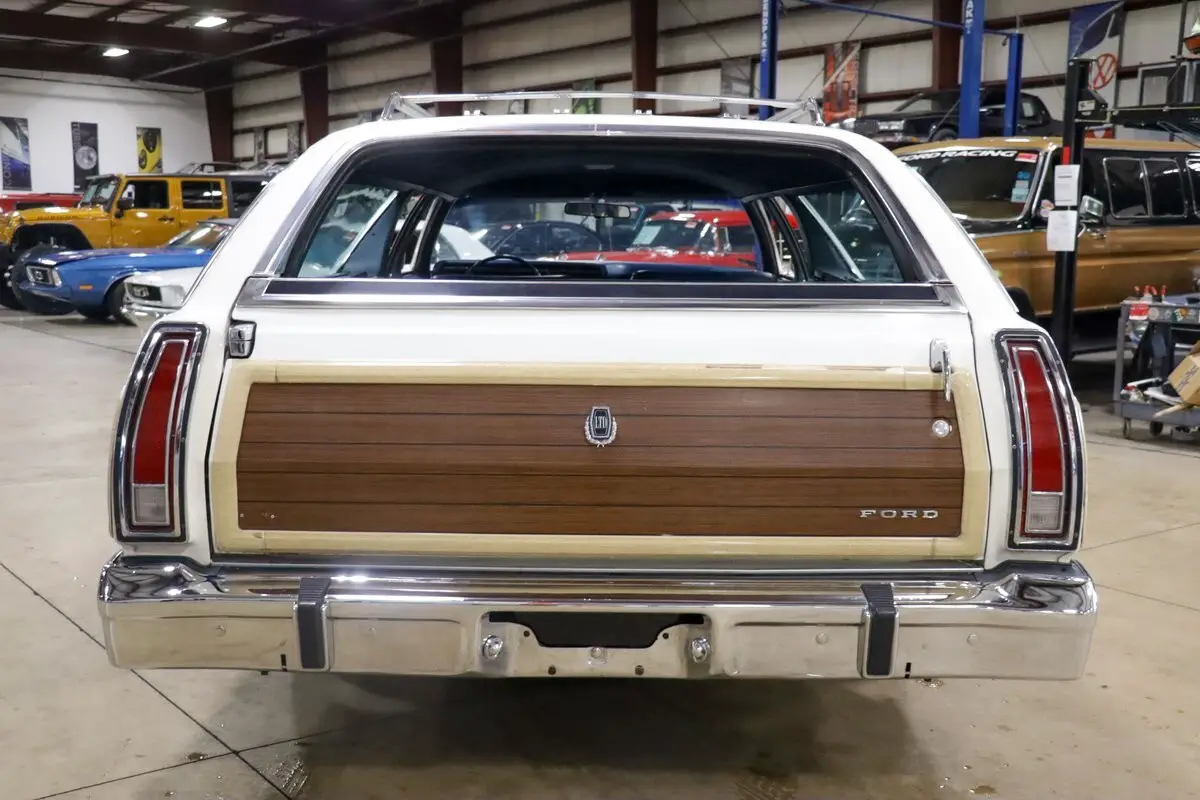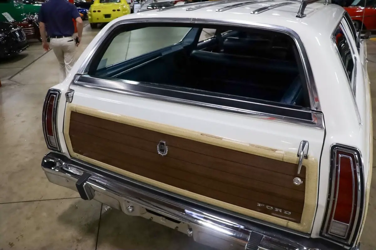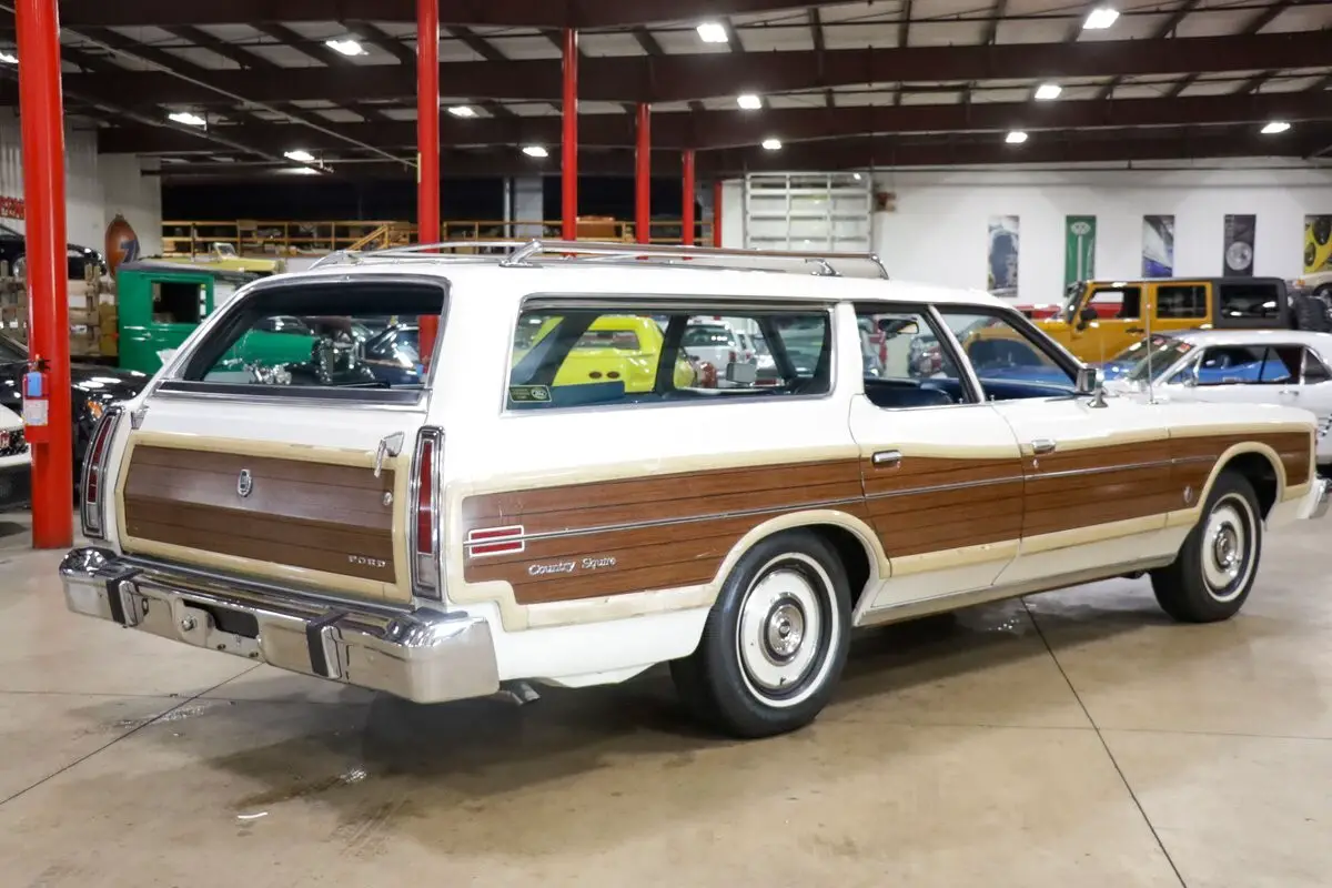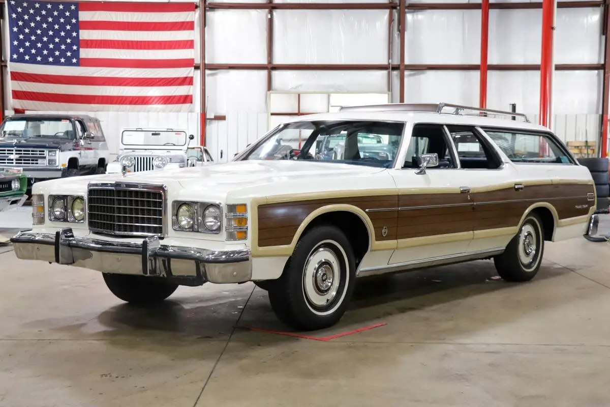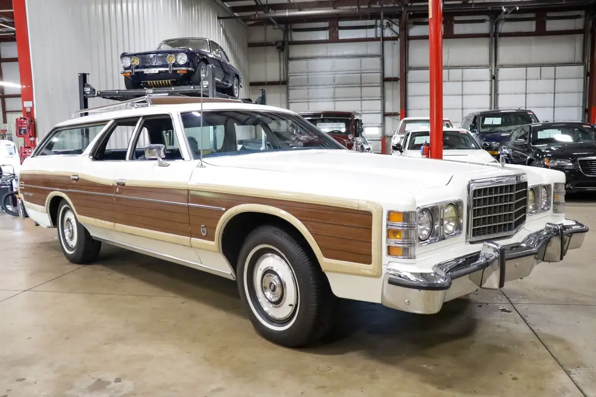GR Auto Gallery is pleased to present this 1975 Ford Country Squire Station Wagon, a nostalgic throwback to the golden age of family road trips. a smooth-running 351ci V8 engine paired with an automatic transmission, this iconic long-roof cruiser provides an effortless driving experience that complements its classic appeal. The exterior is dressed in a classic white paint, enhanced by the signature faux wood trim running along the sides, lending the car its unmistakable Country Squire charm. Factory paint-matched hubcaps and a chrome/wood roof rack add to its period-correct styling.