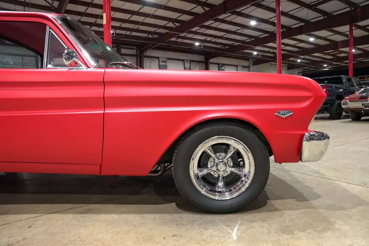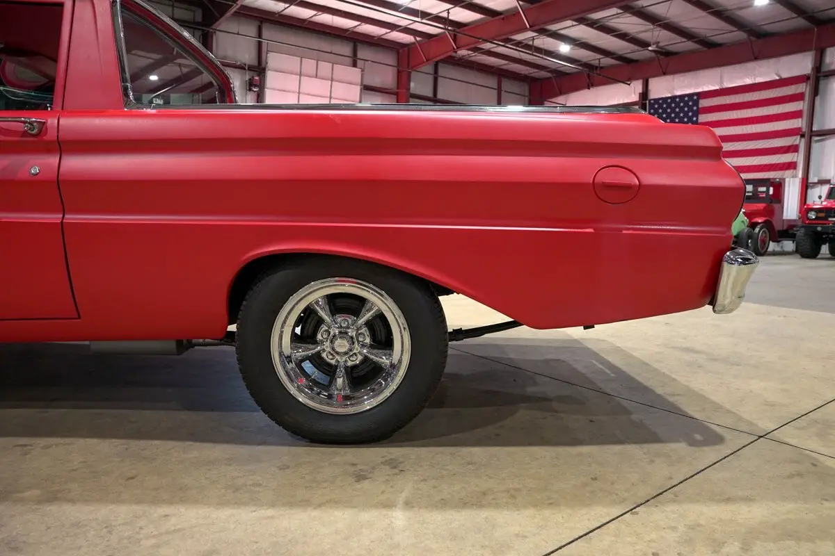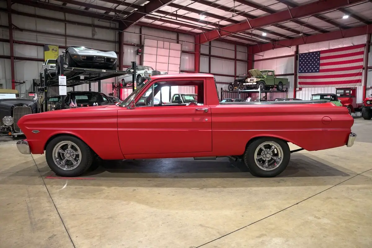 GR Auto Gallery is excited to present this 1965 Ford Falcon Ranchero for your consideration. Finished in a satin semi gloss red paint that gives it a tough, utilitarian look, this Ranchero blends classic lines with a bit of modern edge. The black and red interior ties in perfectly with the exterior, giving the truck a cohesive and clean appearance. It rides on 15 inch American wheels that fill the stance nicely, and the bed has been treated to a spray in liner for durability along with a hinged bed cover for added practicality. The interior has been freshened with new carpet and upholstery, giving the cabin a crisp and updated feel.