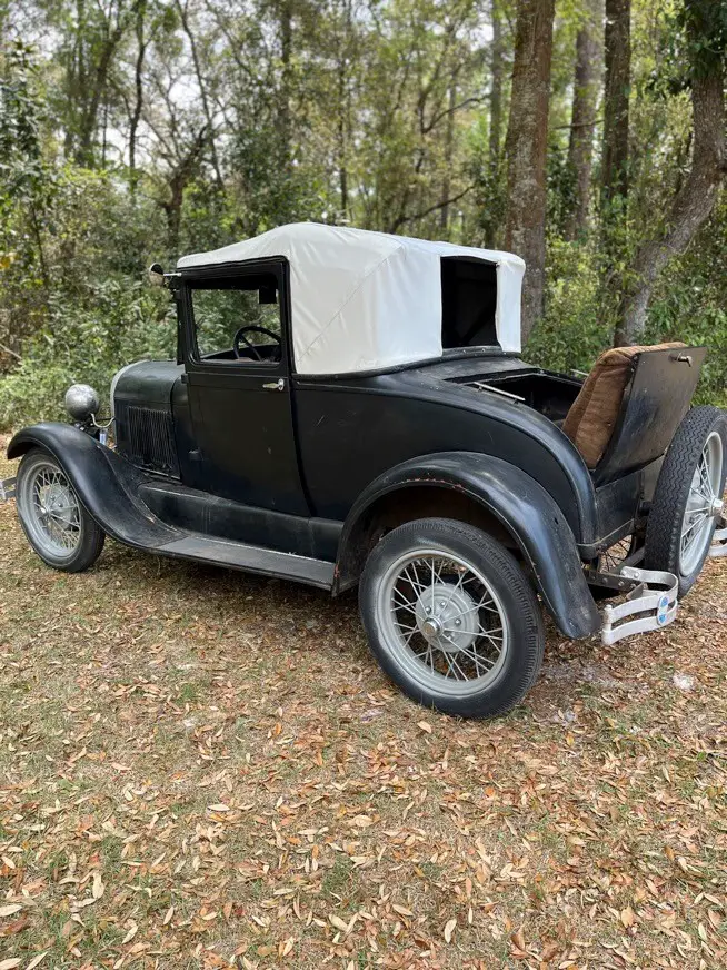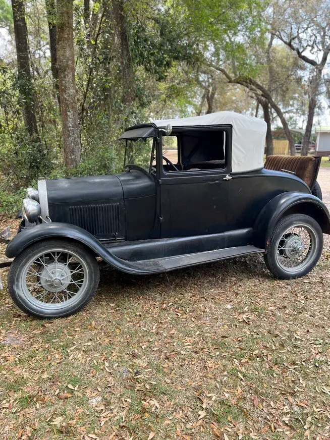 Rare 1929 Ford Model A Sport Coupe (August 20, 1929) with original steel body and functional rumble seat. Collectible Model A with classic rear body taper, fabric top structure, and original design elements.Brush painted black — retains classic patina and vintage character.Engine starts and runs, making it a solid candidate for restoration, preservation, or a drivable project. See pictures for condition..Please email any specific questions prior to bidding or purchase.This car runs, shifts 3-speeds in forward & 1 in reverse and stops...