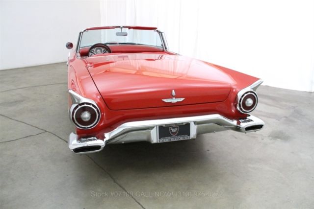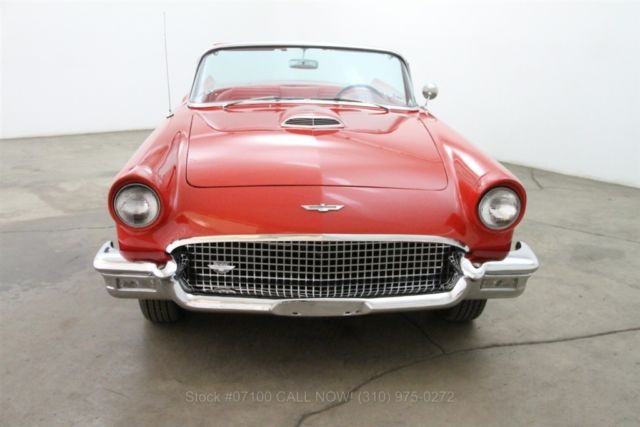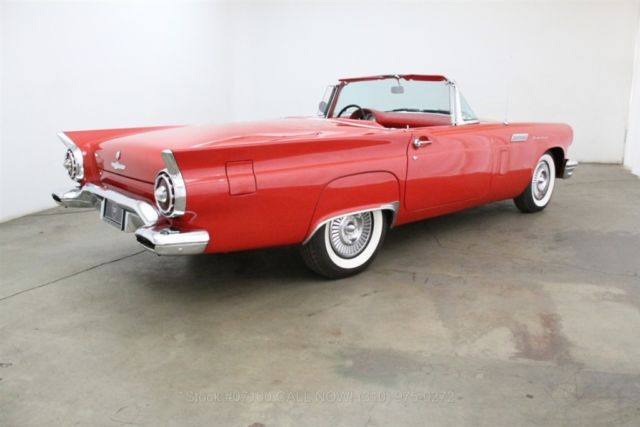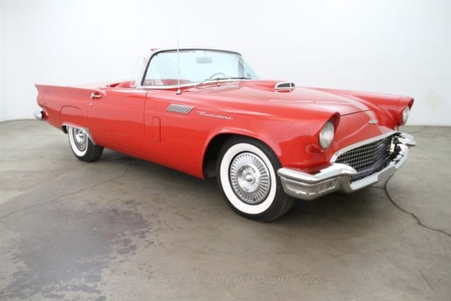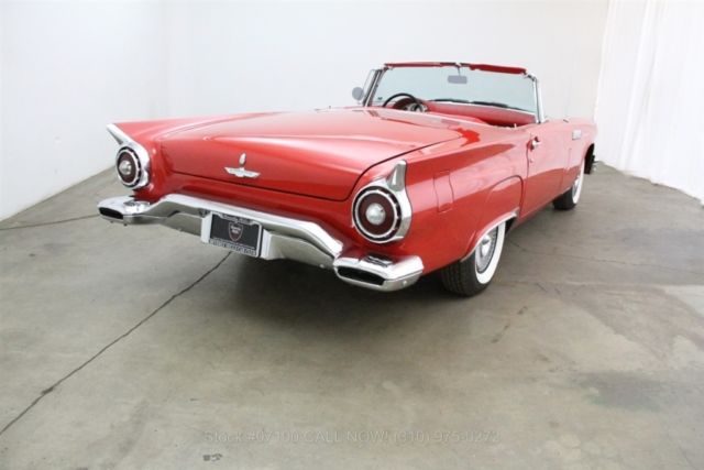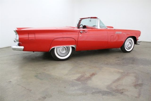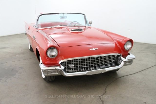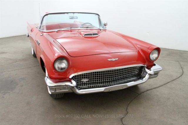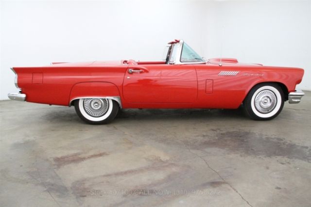 1957 Ford Thunderbird Convertible1957 Ford Thunderbird Convertible matching numbers and 2 tops in stunning flame red with pleated flame vinyl interior. Comes equipped with a 312 cubic inch with an automatic "Fordomatic" transmission, air conditioning, OEM radio, wire wheel covers and includes the jack, spare tire and tonneau cover. Clean and detailed engine bay. Very presentable example. Mechanically sound. For $29,500If you have any additional questions Please call 310-975-0272 or email with any questions! We also welcome all international buyers. We can help with shipping quotes and arrangements., 1957 Ford Thunderbird Convertible matching numbers and 2 tops in stunning flame red with pleated flame vinyl interior. Comes equipped with a 312 cubic inch with an automatic "Fordomatic" transmission, air conditioning, OEM radio, wire wheel covers and includes the jack, spare tire and tonneau cover. Clean and detailed engine bay. Very presentable example. Mechanically sound.