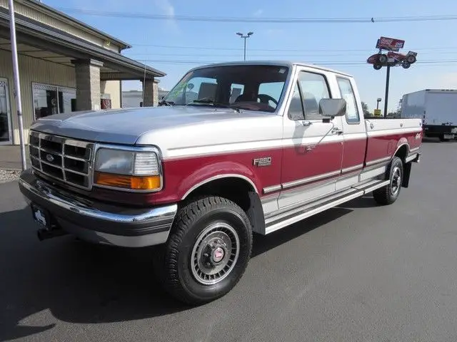1992 FORD F250 SUPER CAB XLT, 460 V8, 5 SPEED MANUAL, 4WD, AIR CONDITONING, AM/FM RADIO, BEDLINER, CASSETTE PLAYER, CLOTH UPHOLSTERY, CENTER CONSOLE, CRUISE CONTROL, FLOOR MATS, LONGBOX, POWER DOOR LOCKS/ WINDOWS, RUNNING BOARDS, TILT WHEEL, TRAILER TOWING PACKAGE