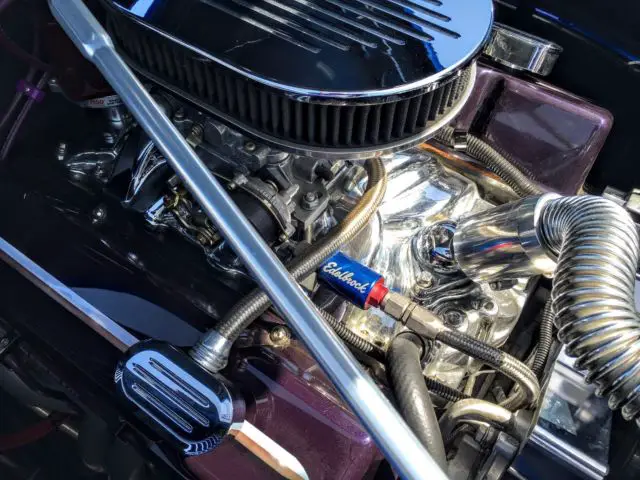 All original Ford frame, ceramic coated headers, all 4 fenders interlined, all steel body, 3rd brake light, 1968 4-bolt main engine, bored and stroked to 383cid with Brodix aluminum heads, shaved door handles, frenched headlights and taillights, fully boxed chassis with rear end narrowed 3" on each side, Ford Traction-Lok 3.79 rear end with Moser axles, triangulated 4-link rear suspension with Carrera coil overs, Mustang II style front suspension with Heidt's 2" dropped spindles and Carrera coil overs, Wilwood disc front and rear brakes with slotted and drilled rotors, suicide doors lengthened and channeled at bottom of window opening, B-pillars thinned and slanted forward, one off custom hood, front fenders lengthened and molded into running boards, rear roll pan modified for exhaust, all wheel well openings re-radiused, one off fabricated instrument panel and center console, Wings series gauges, Sony receiver cd player, JBL & Kenwood speakers, Dodge Viper seats, vintage air conditioning, street and performance stainless steel headers with 2 chamber Flowmasters, all jet hot coated. TPI 700R4 transmission with 2,500 stall converter.