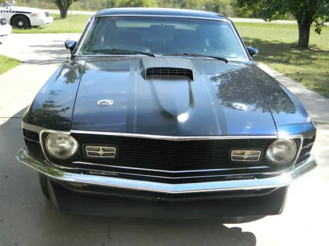1970 Ford Mustang Mach I, Dark blue in color with black interior. 351C, 4V, FMX Automatic, 3.25 axle ratio, PS, PB, AC, Wheels have been changed to Crager SS. We have the original wheels. Tires are almost new. No rips in the interior but it does need some minor trim work. Nothing wrong mechanically with the car. No rust issues. Drives good, runs good. We have a Deluxe Marti Report and all documentation dating back to 1999. Not afraid to drive the car anywhere. The reason for selling is I lost my leg in a motorcycle accident and it is hard for me to get in and out of it. Any questions fell free to contact me 918-869-2953. Fly in and drive it home.