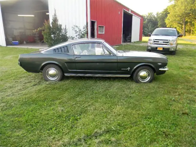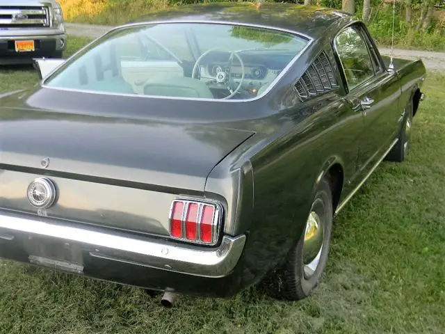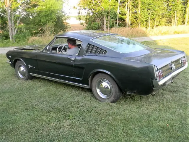 65 MUSTANG FASTBACK RUST FREE, VERY ORIG CAR WITH MOST ORIG METAL. CAR RESTORED IN 1996 AND GARAGED, DRIVEN FREQUENTLY UNTIL I BOUGHT IT 2 WEEKS AGO. DRIVE ANY WHERE DRUM BRAKES 2BRL 289 W C4 AUTO. 8INCH REAR W 300 GEARS. ORIGINAL. CAR HAS 133K MILES 20K SINCE RESTORE AND MOTOR REBUILD IN 96. LEAKS ALITTLE TRANS FLUID BUT STILL VERY DRIVEABLE. HAVE DRIVEN IT FOR SEVERAL 40MILE ROUND TRIPS AND IT RUNS FLAWLESSLY ALL LIGHT S AND SWITCHES WORK. WIPERS. ALL EXTEIOR AND INTEREIOR LIGHTS WORK. AGAIN NO RUST BUT SURFACE RUST UNDERNEATH AND ITS VERY LIGHT. LOWER REAR QUARTERS REPLACED DURING RESTORE AND HOLDING UP VERY WELL. NO BUBLES OR CRACKES IN PAINT BUT IT WASNT THE NICEST PAINT AND IT NEEDS BUFFING TO BE REAL NICE, I CAN SEE WAX ON IT. CAR NEEDS A SERIOUS DETAIL JOB. THE TRANS LEAK STOPED AND MOTOR COULD USE A GOOD TUNEUP TO BE UP TO ITS FULL POWER. IT RUNS FINE NOW BUT I WOULD TUNE IT UP. DRUM MANUAL BRAKES ALL 4 CORNERS. THIS IS A NICE CAR U CAN DRIVE AND HAS NO RUST ISSUES.
